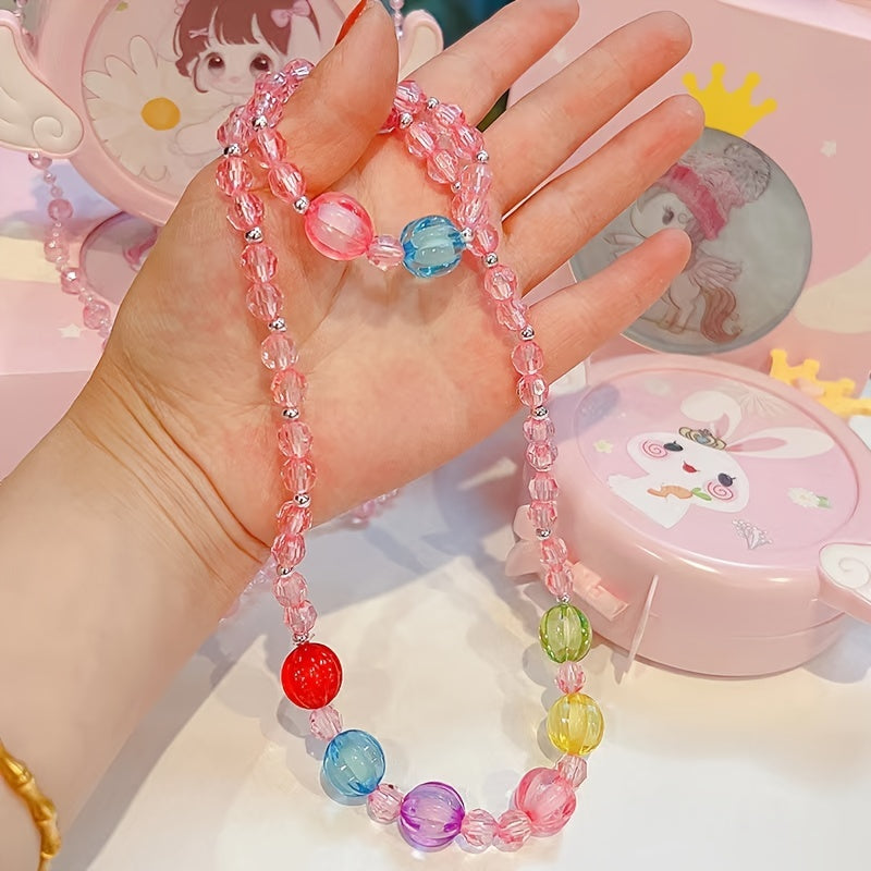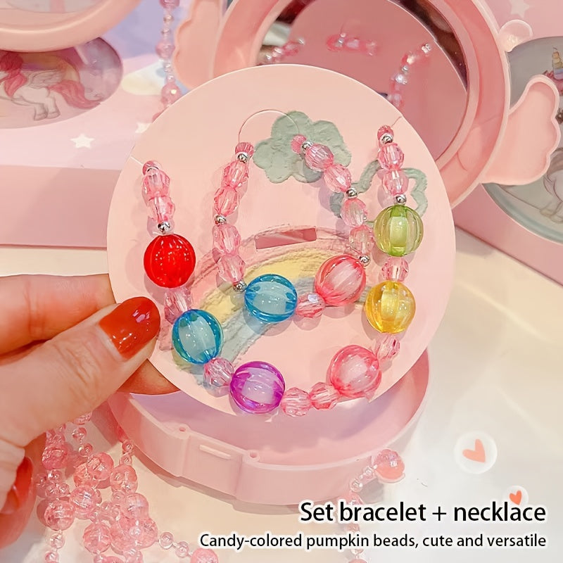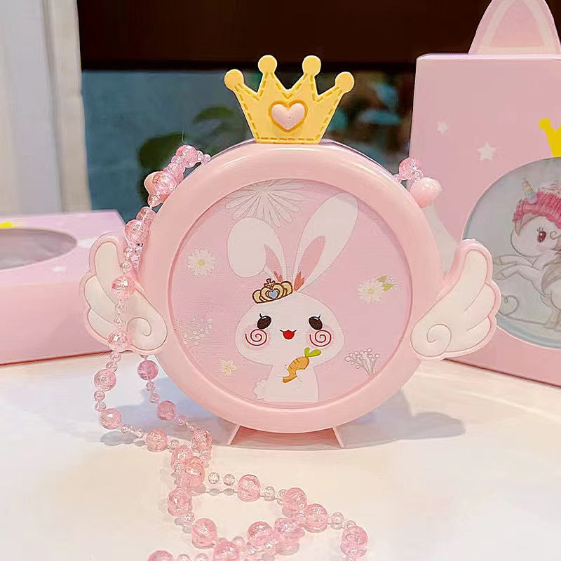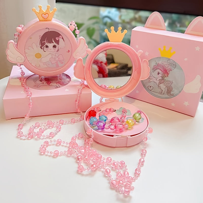 This lovely girls jewelry bag is perfect for storing necklaces, bracelets, and other small trinkets. It features a mirror inside and makes a great creative gift bag for kids.