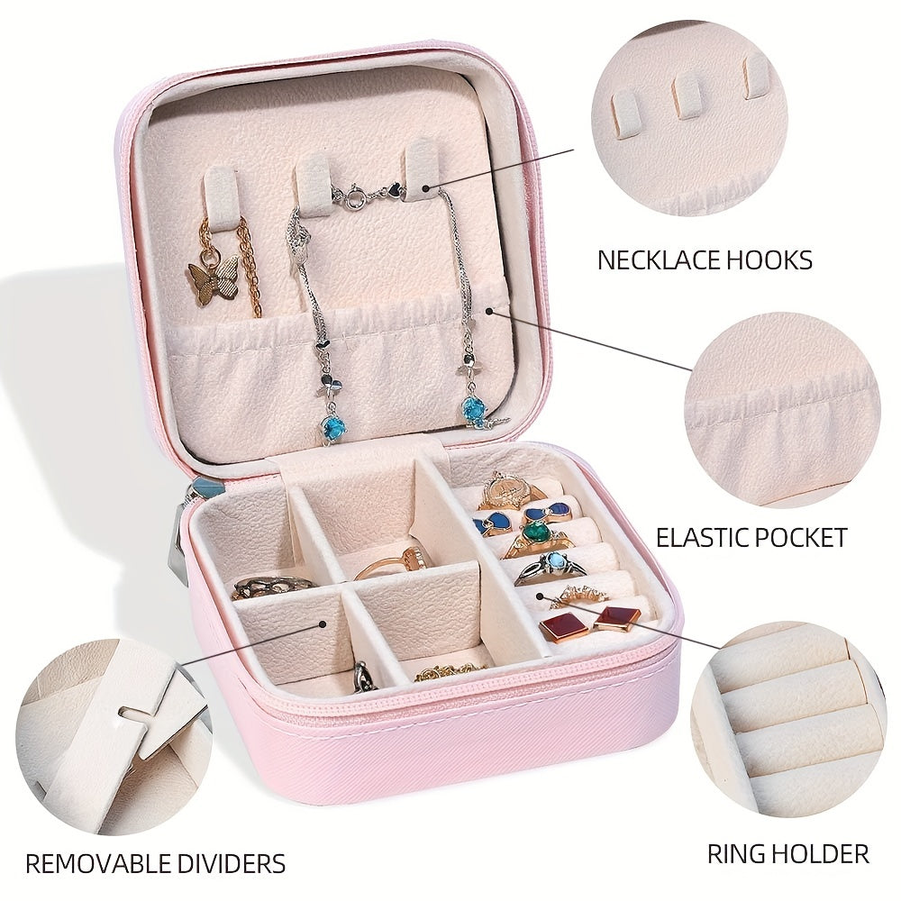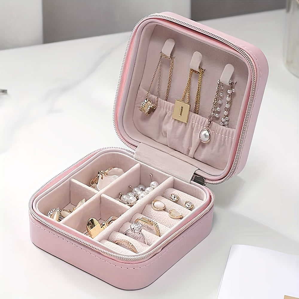 Keep your jewelry organized and safe with this multifunctional printed jewelry box designed for necklaces and rings.