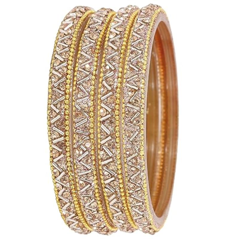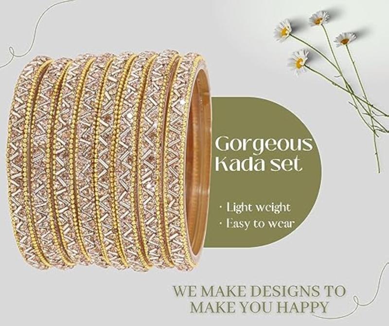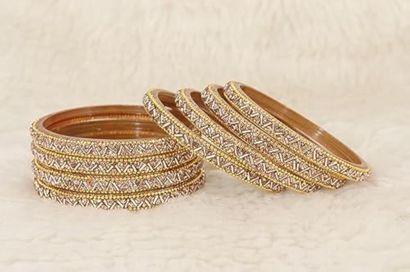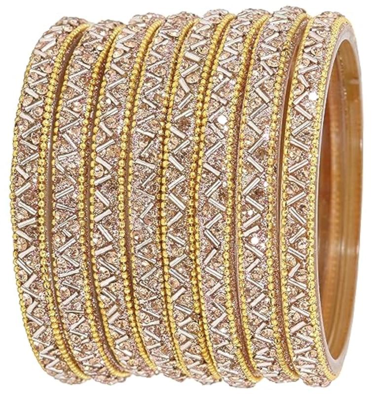 Elegant glass bangles set with stunning zircon gemstone and beads. Perfect for women. Pack includes 8 bangles.