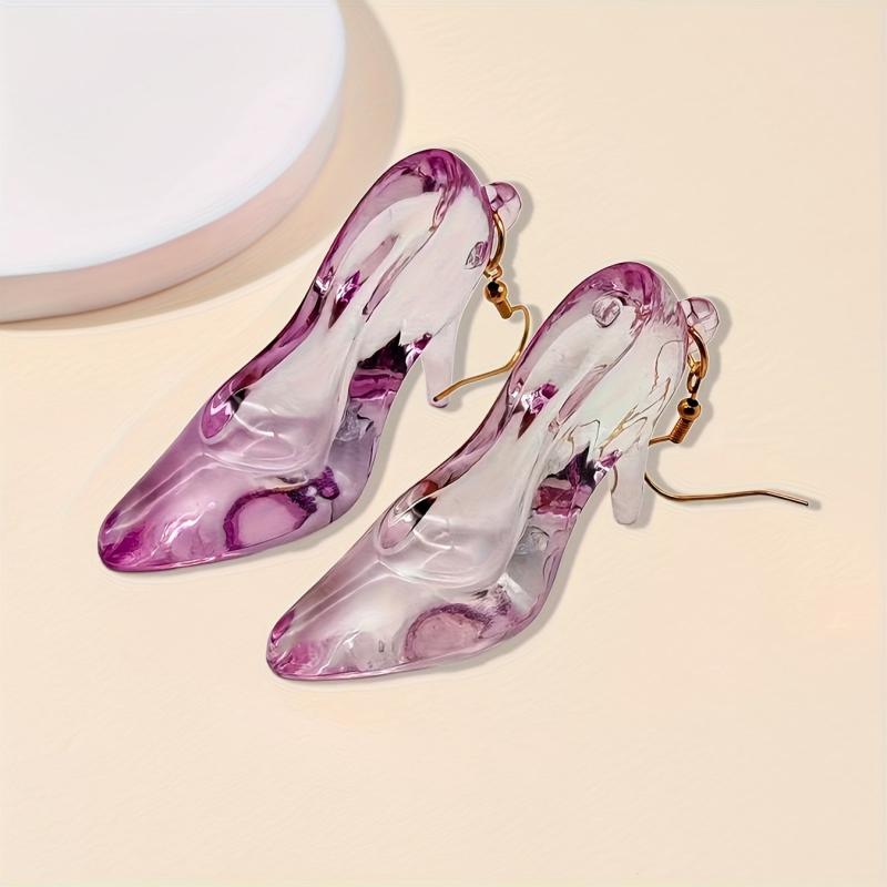 Add a touch of glamour to any outfit with these versatile high heel shoe earrings. The translucent glossy finish and golden tone accents make them perfect for daily wear or special occasions.