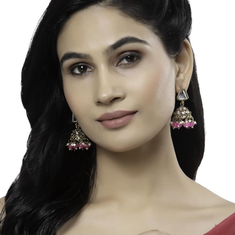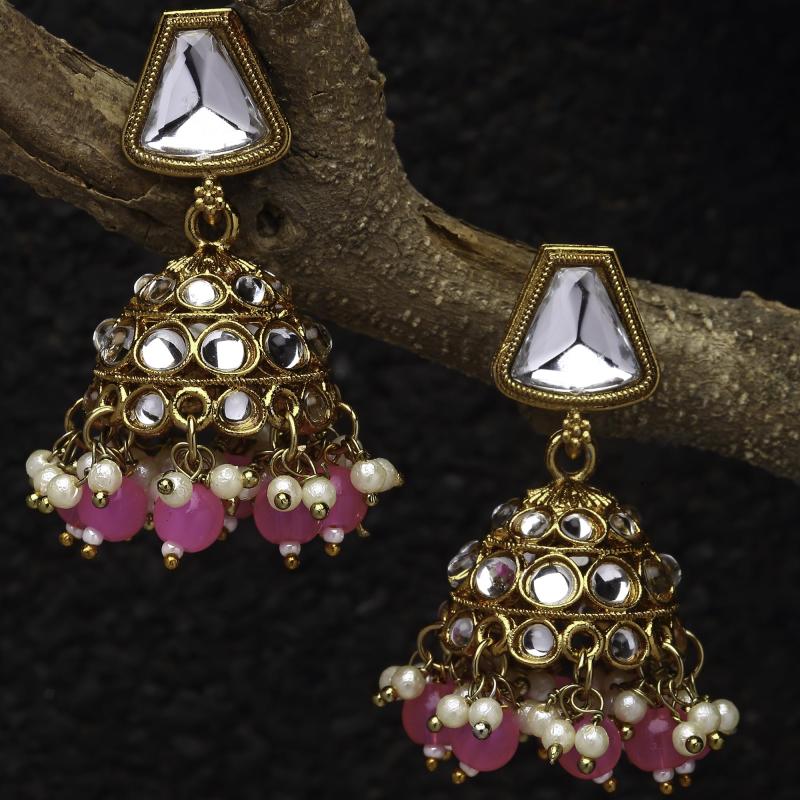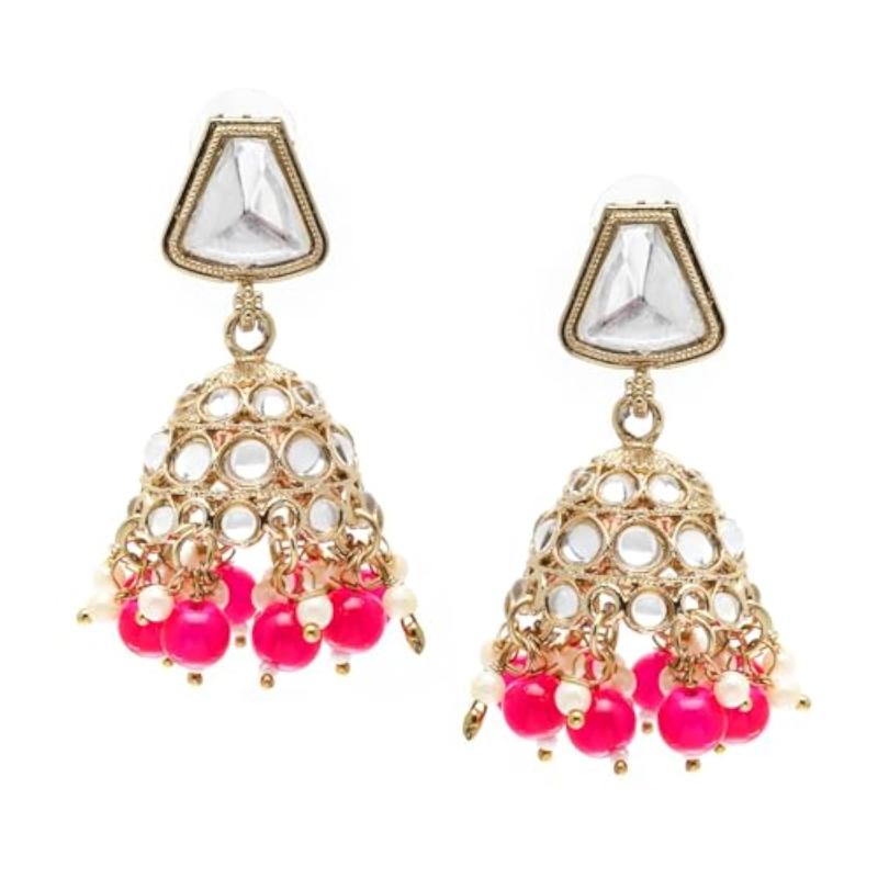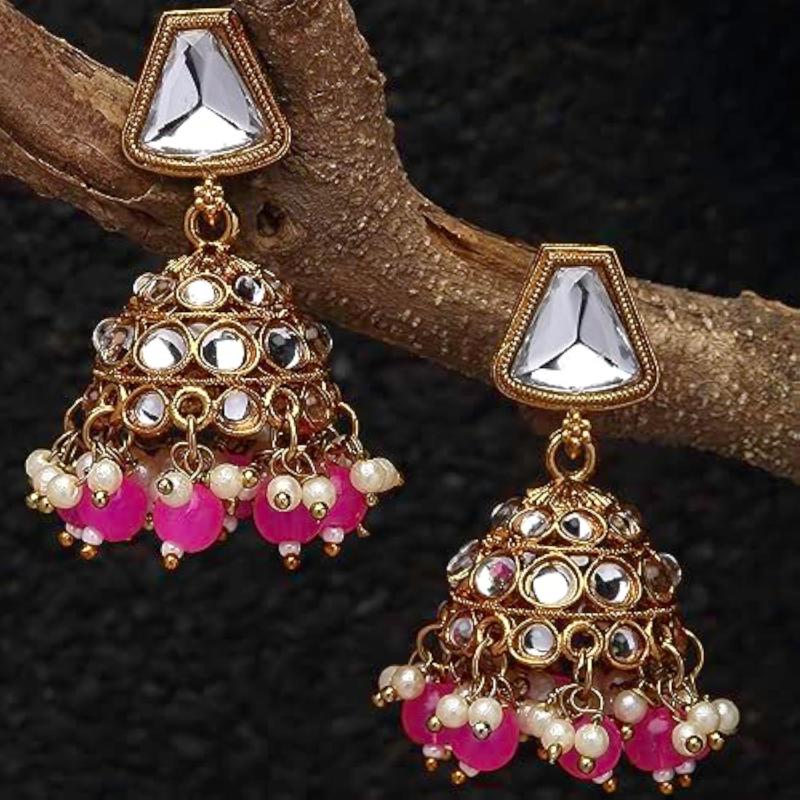 Elegant dome-shaped mirror jhumka earrings with kundan and pearls for a traditional touch