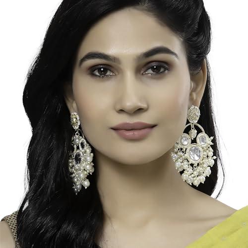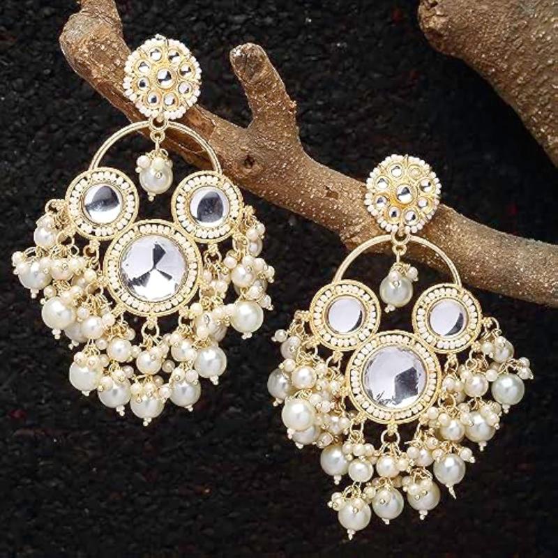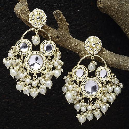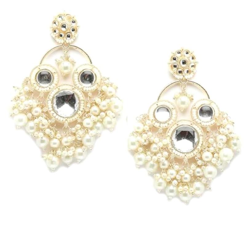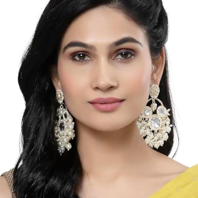 Elegant handcrafted earrings with floral design, kundan and pearls. Perfect accessory for special occasions.