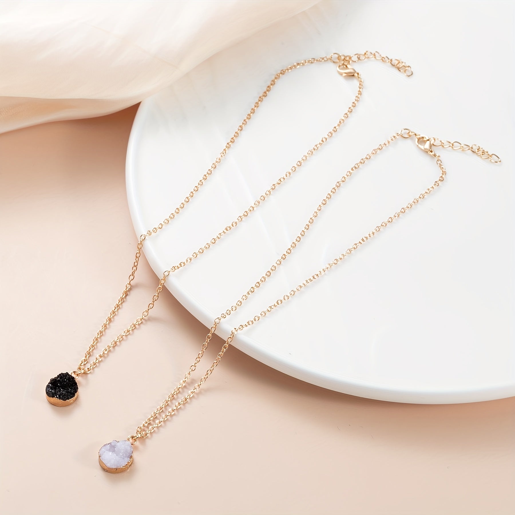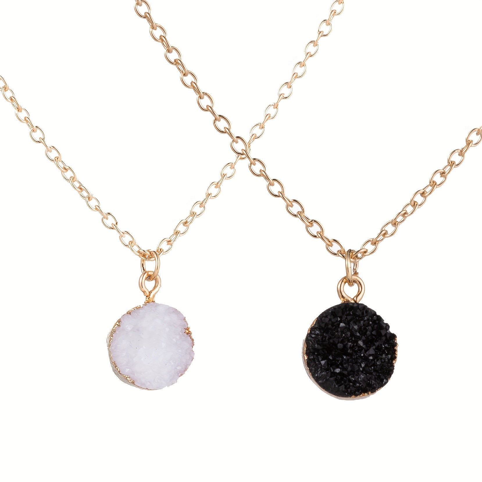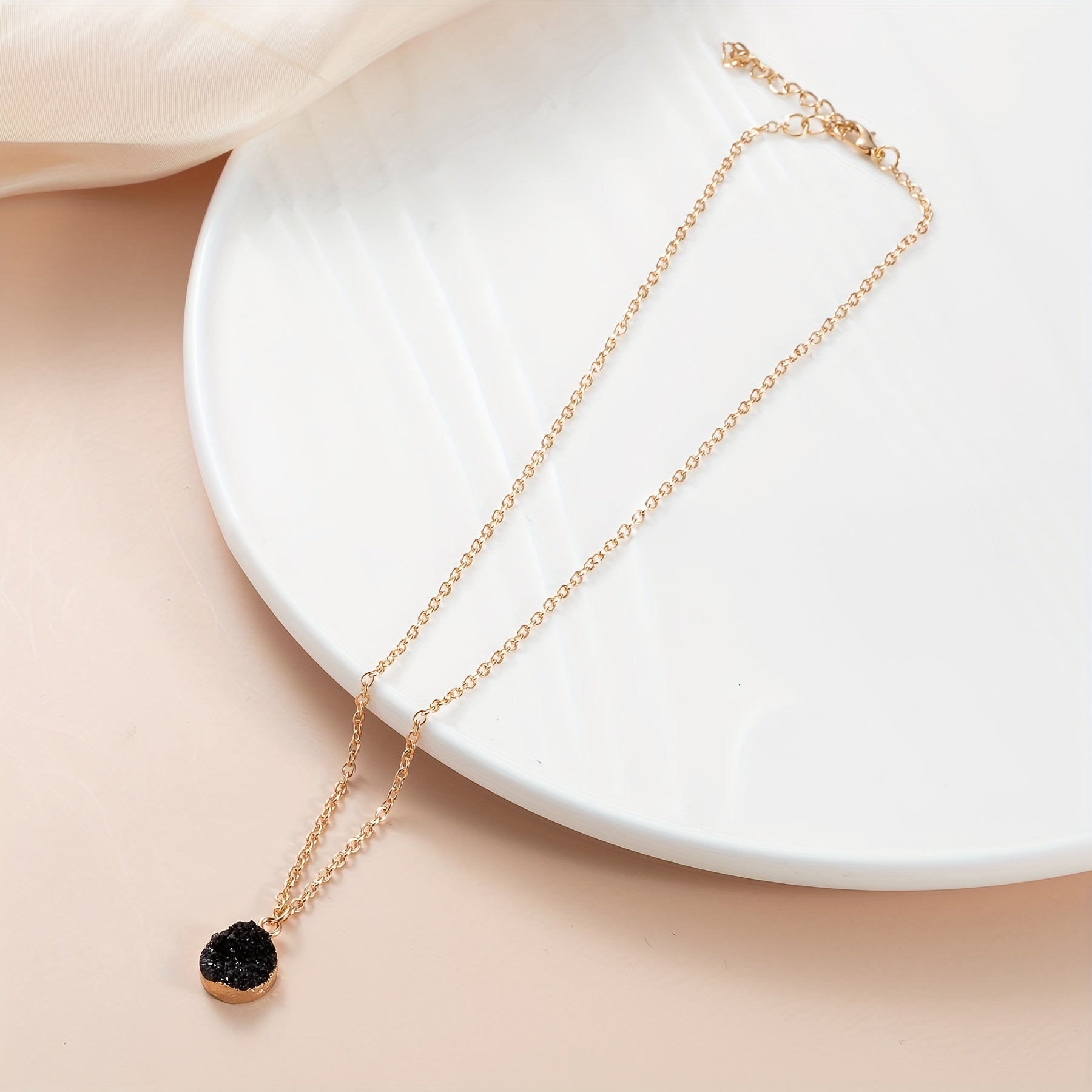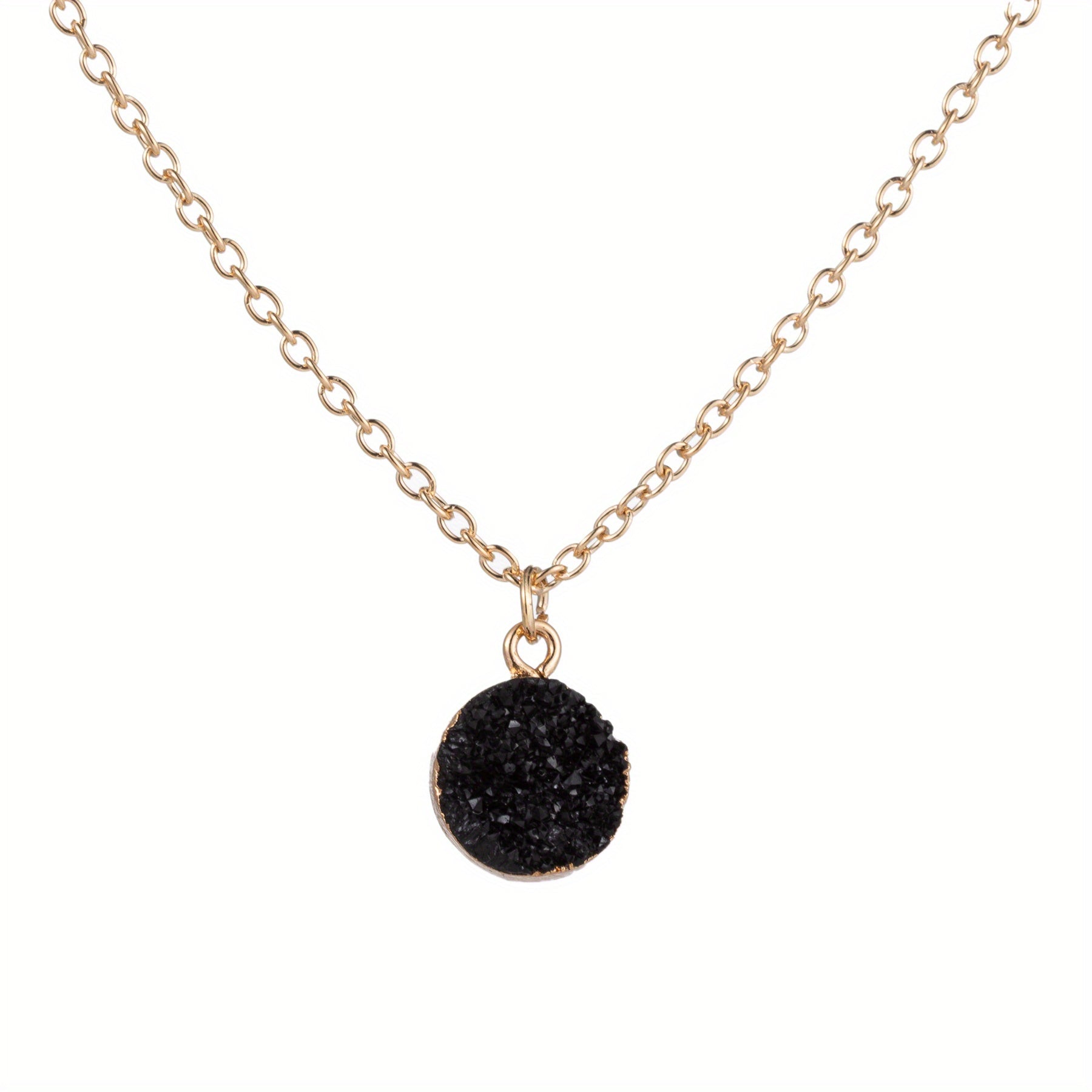 Elegant and stylish, this short necklace features a small round crystal stone druzy pendant that adds a touch of sophistication to any outfit.