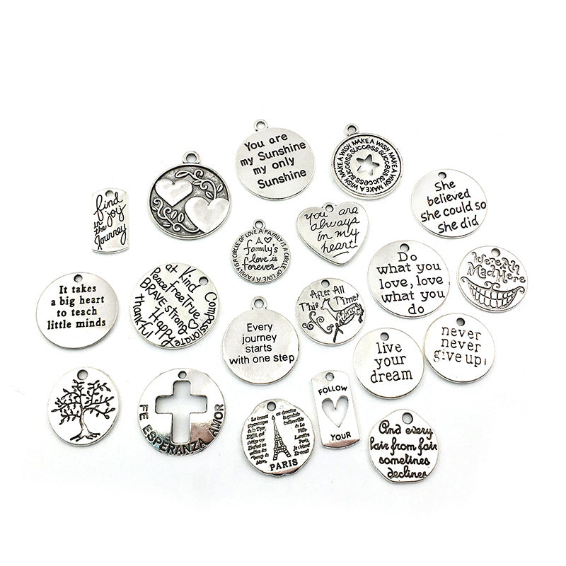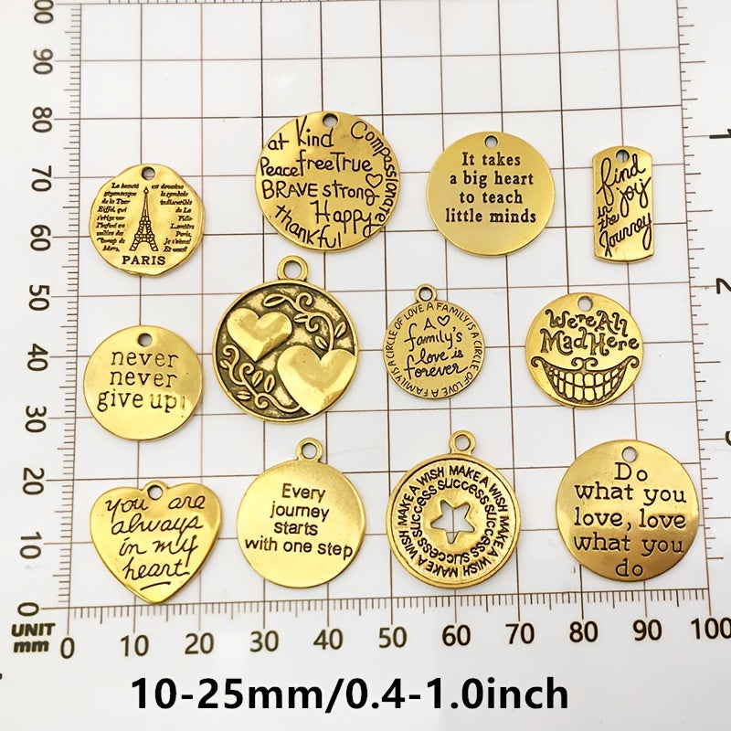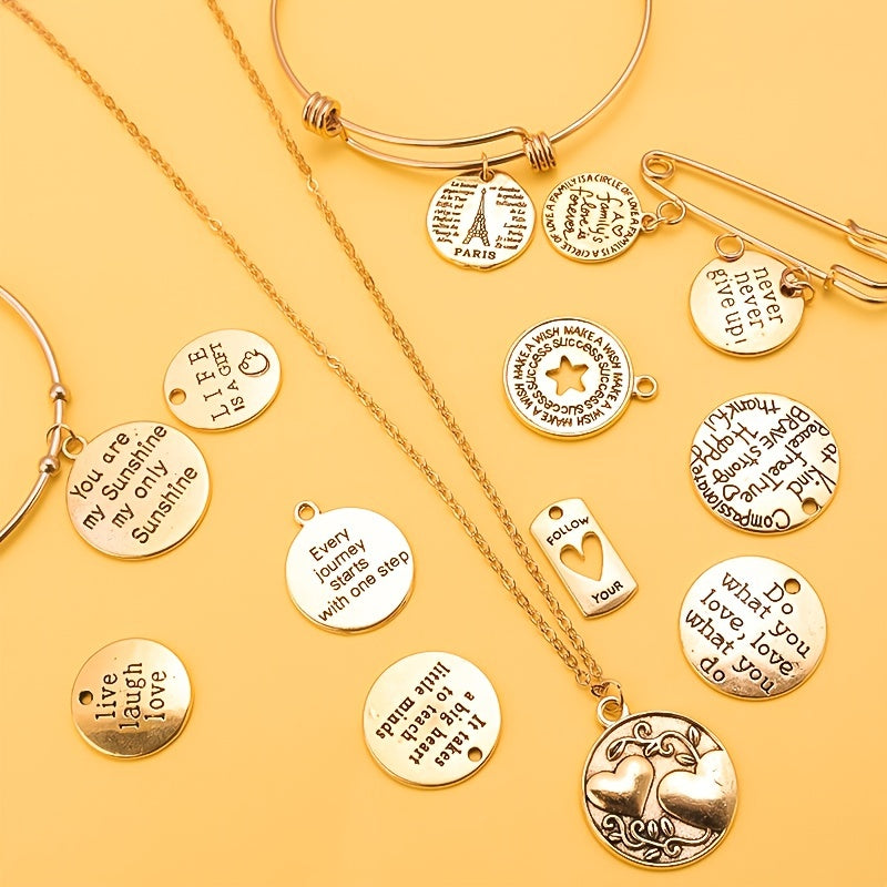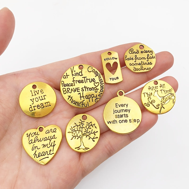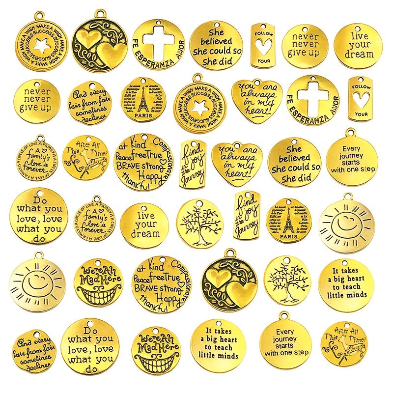 Add a touch of antique charm to your jewelry creations with these golden inspiration words charms pendants. Perfect for necklaces and bracelets.