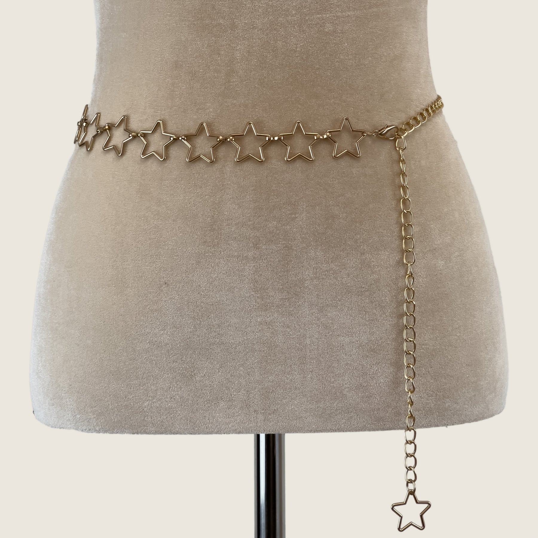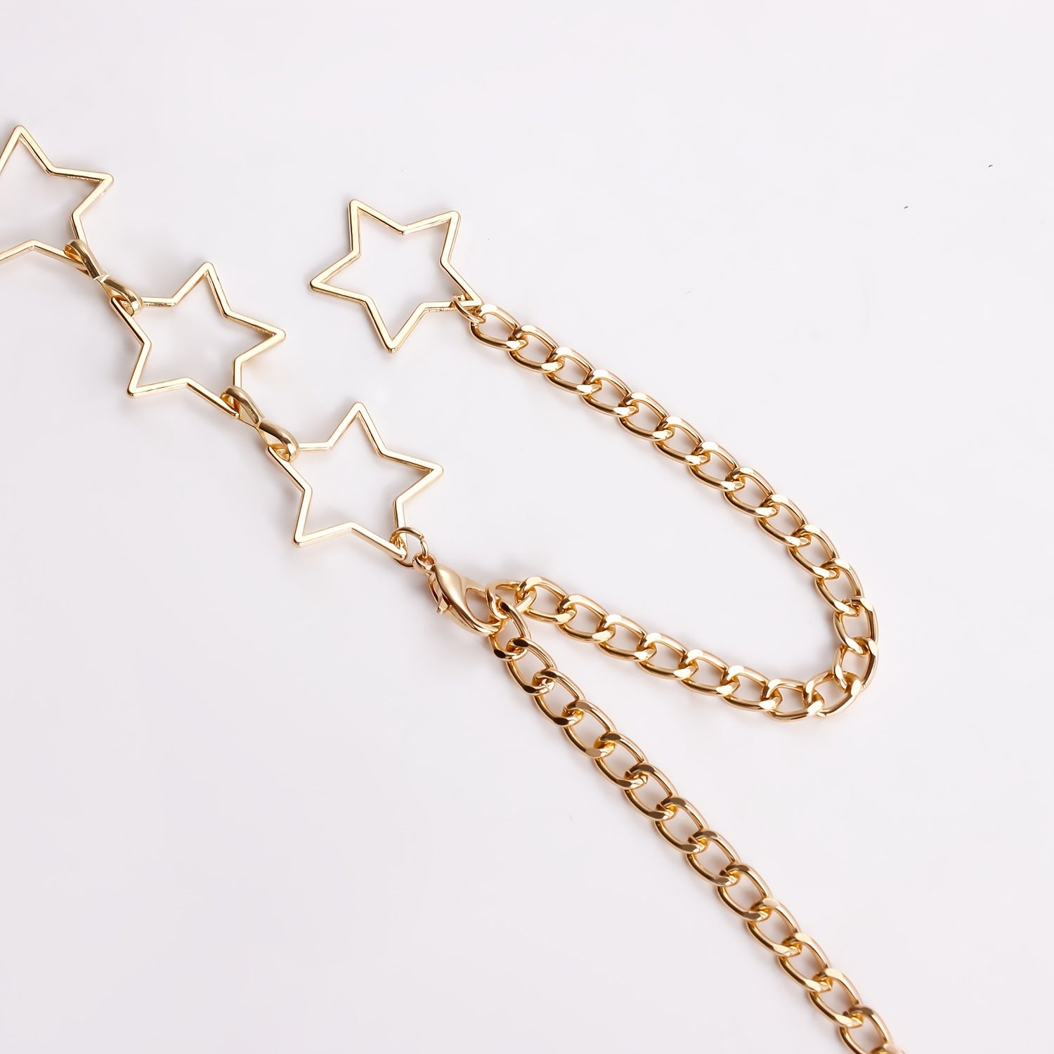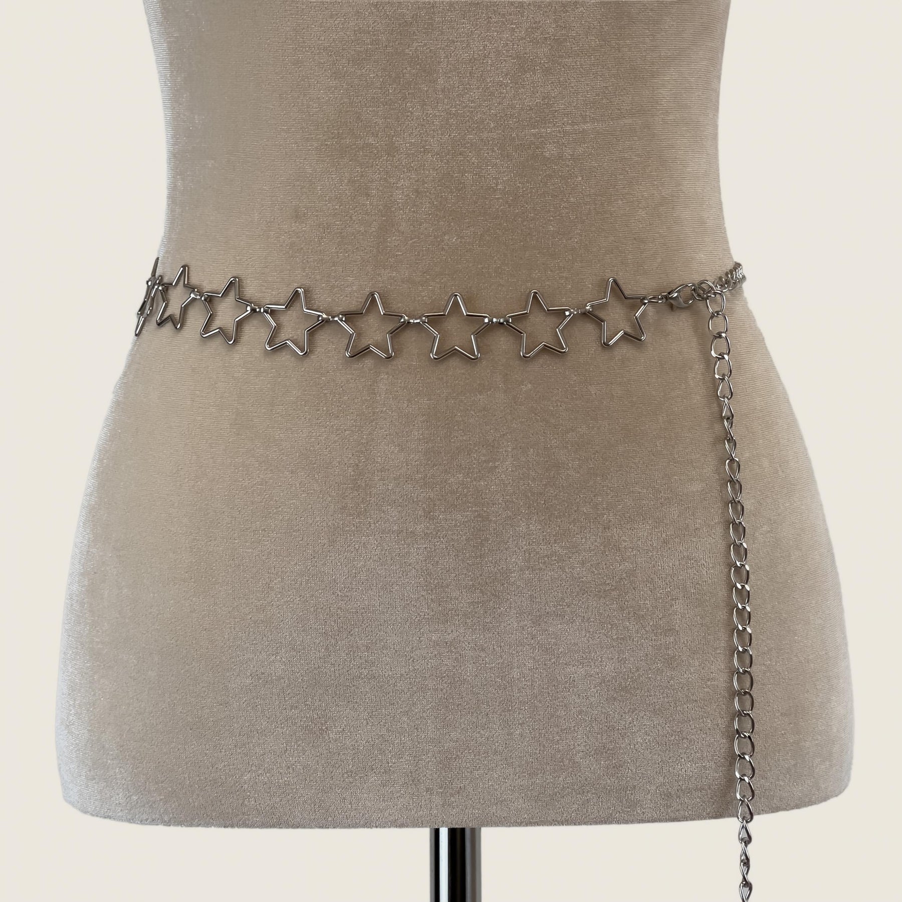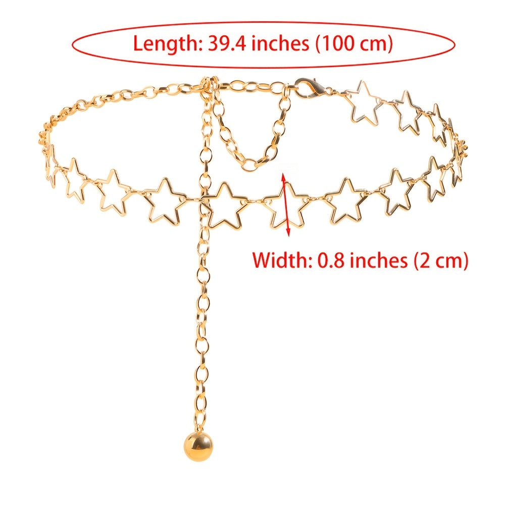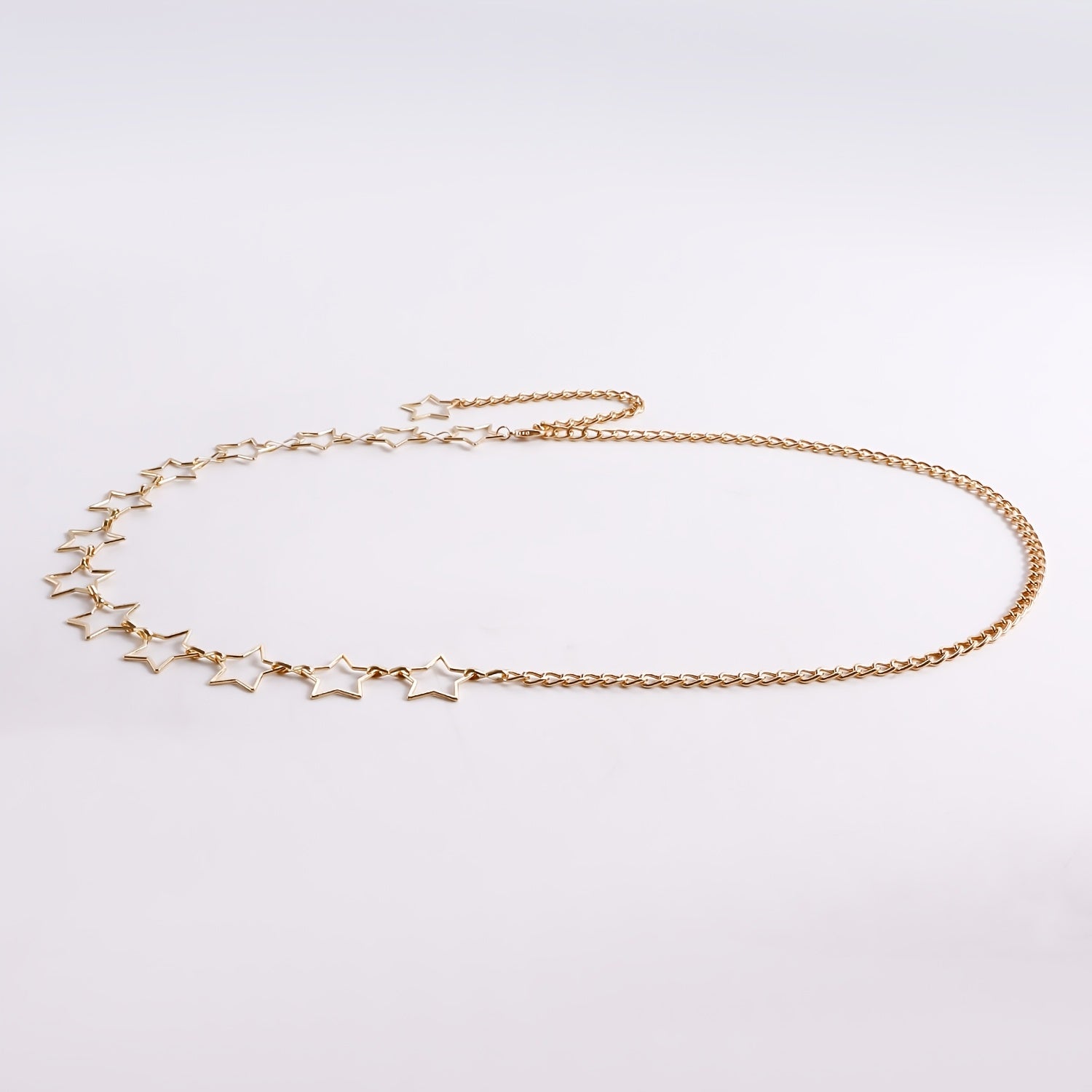 Add a touch of glamour to your outfit with this adjustable metal waist chain belt featuring hollow star design. Perfect for parties, weddings, and casual wear.