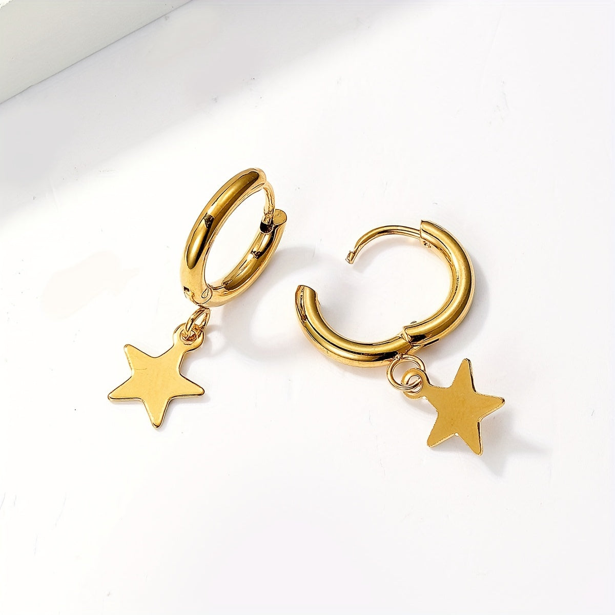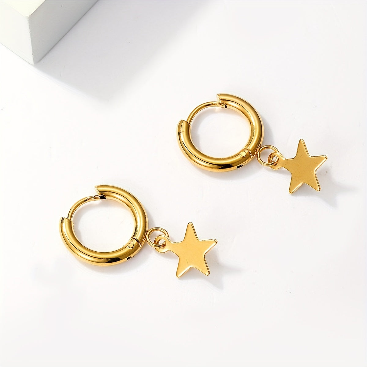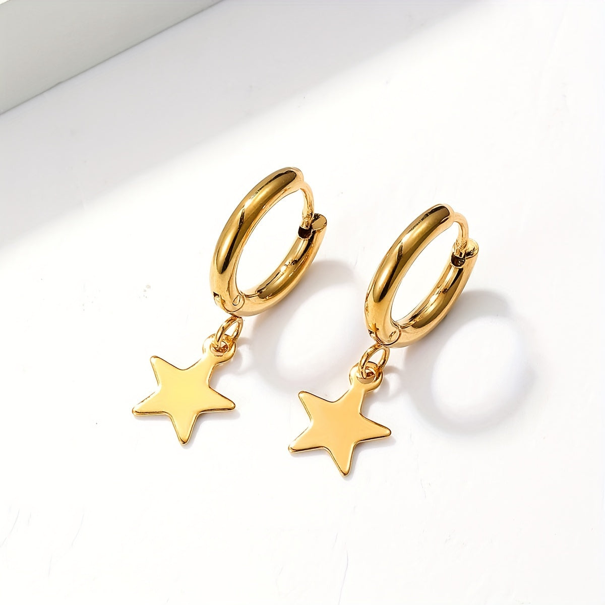 Add a touch of style to your look with these electroplated golden star earrings made of durable stainless steel.