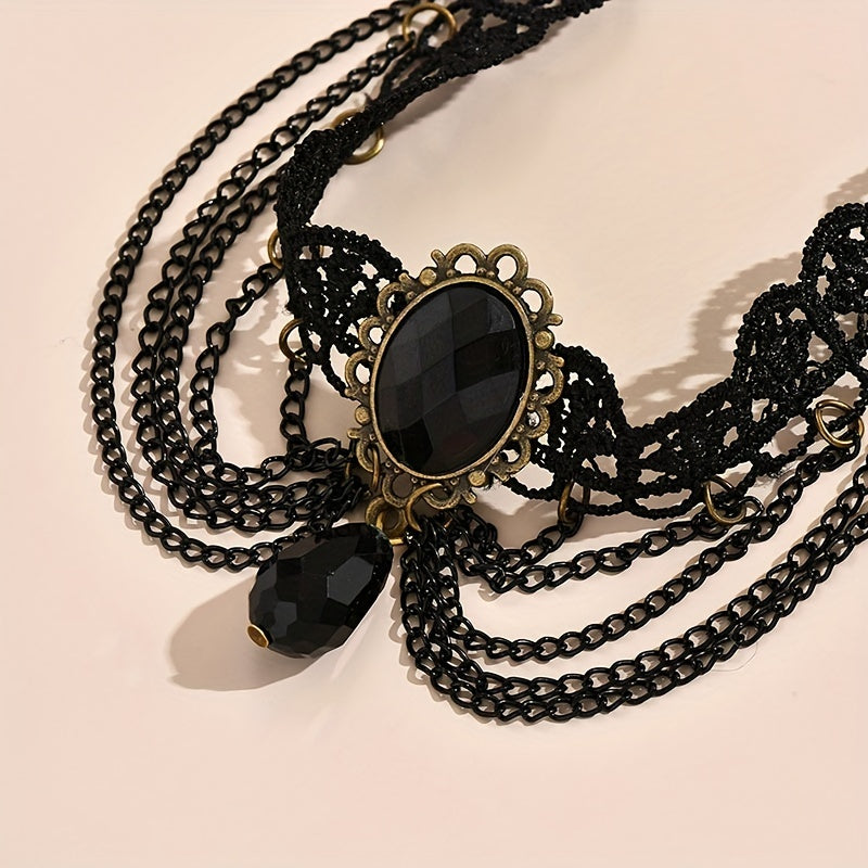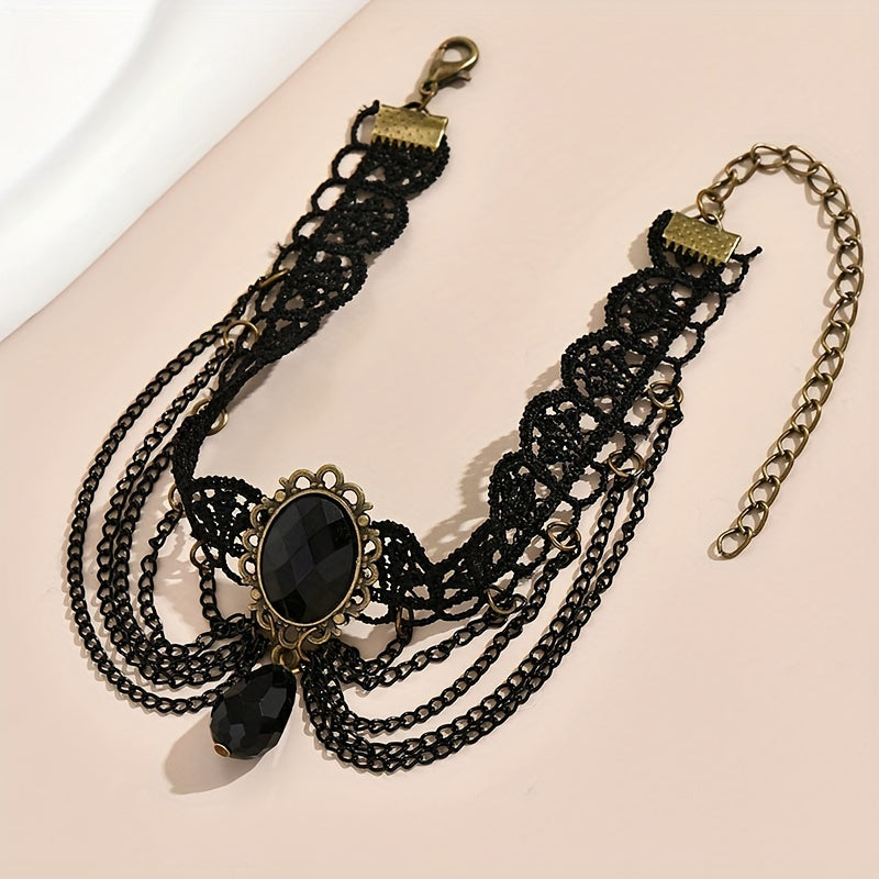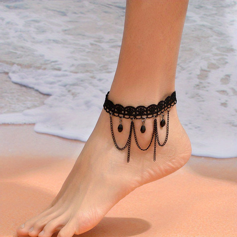 Add a touch of horror and gothic style to your look with this multilayer chain lace anklet. Perfect accessory for Halloween or spooky-themed events.