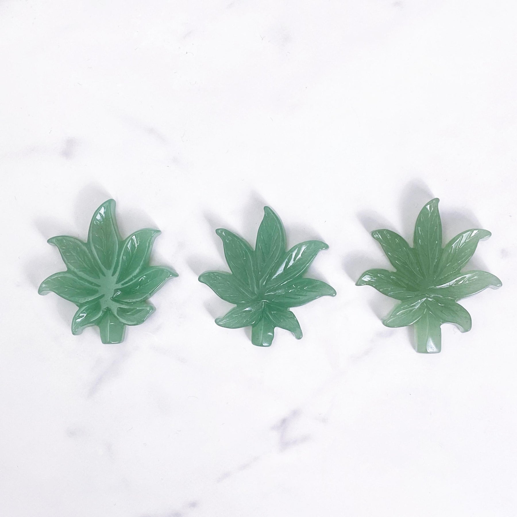 Bring the soothing energy of green aventurine into your space with this beautifully carved leaf crystal. Ideal for home decoration and healing practices.