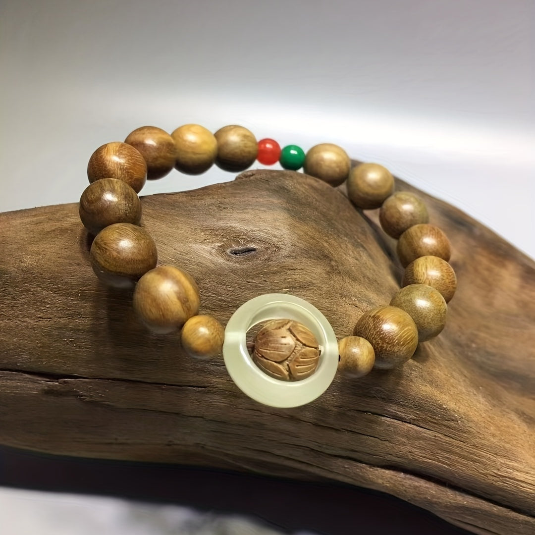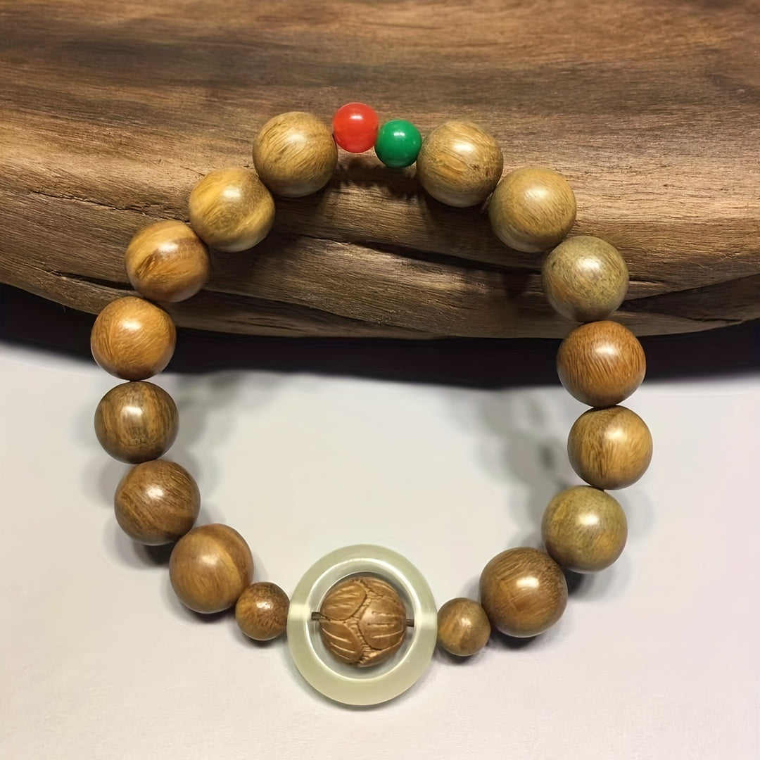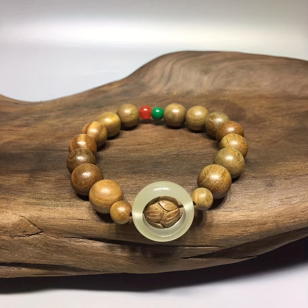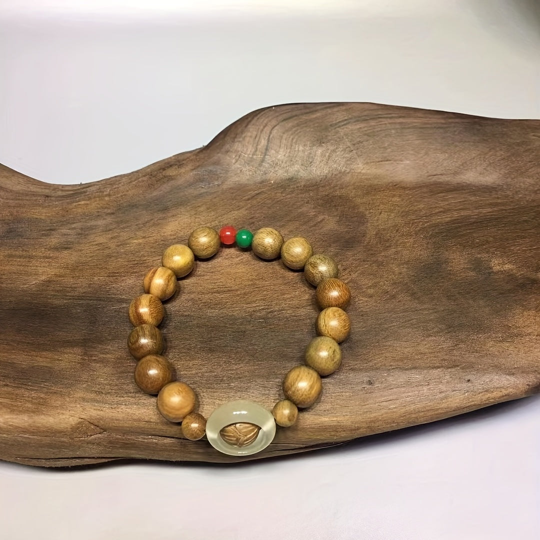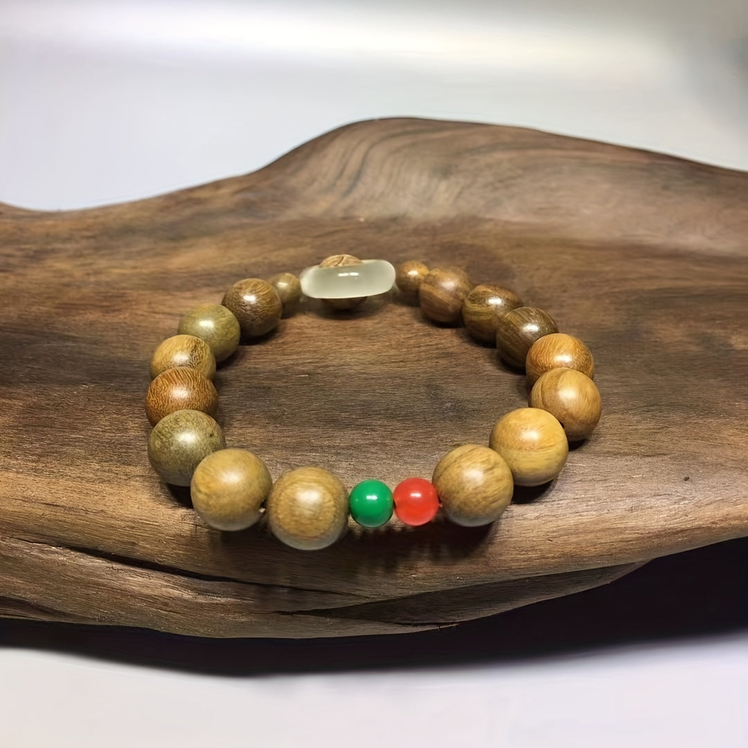 Handmade green sandalwood beaded bracelet designed for yoga, meditation, and everyday wear. Crafted with natural wood for a unique look.