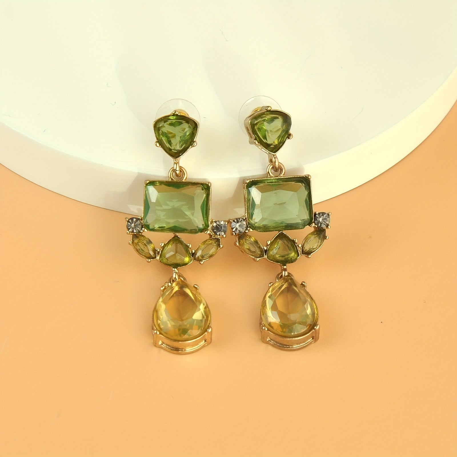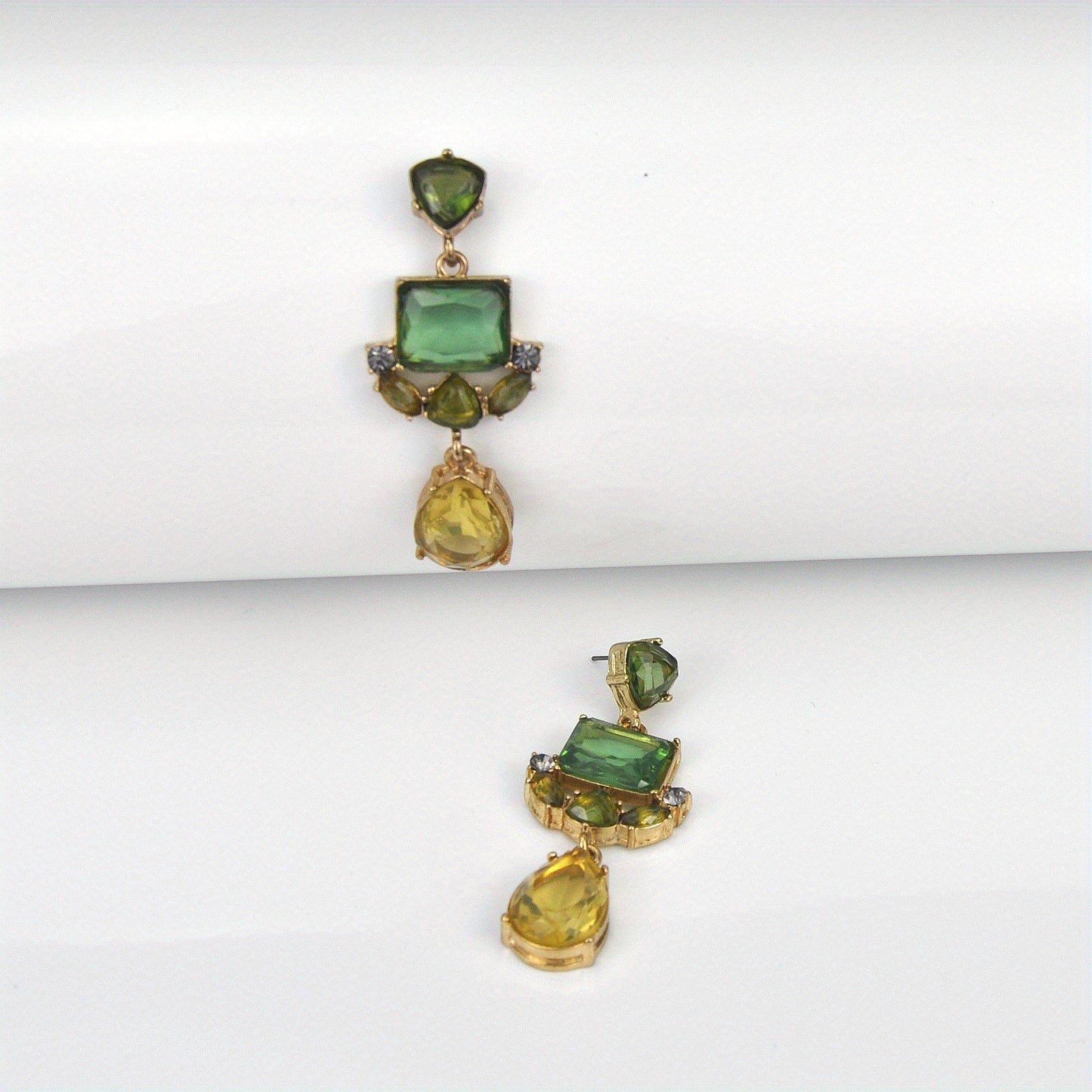 These stunning dangle earrings feature green and yellow crystal glass beads, perfect for adding a pop of color to any outfit. They make a great holiday gift for someone special.