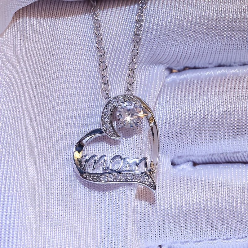 This beautiful heart-shaped pendant necklace with inlaid rhinestones is a perfect gift for mothers. Show your love and appreciation with this stylish accessory.