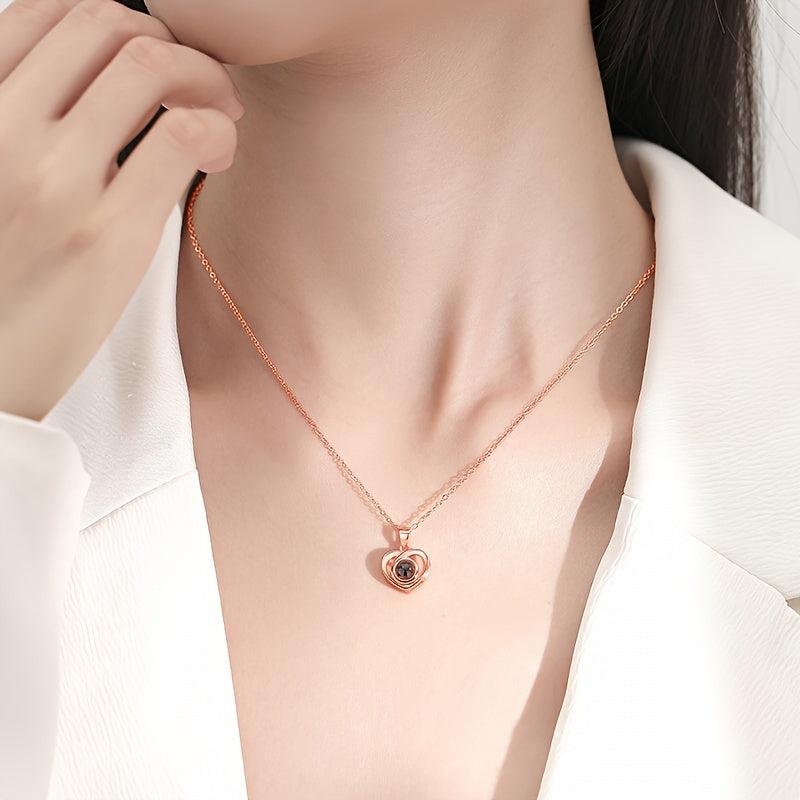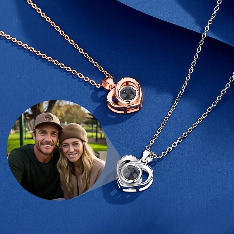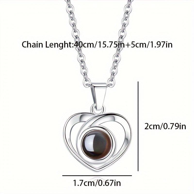 Show your love with this heart-shaped pendant necklace featuring a custom photo projection. Made with synthetic stone, this necklace is perfect for daily wear and gift giving, ideal for Valentine's Day and all seasons.