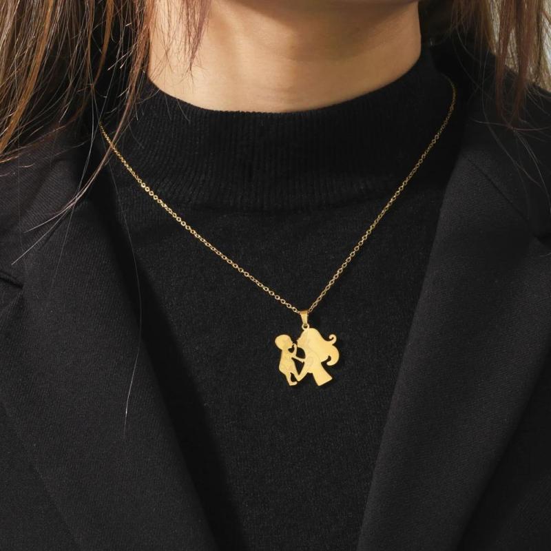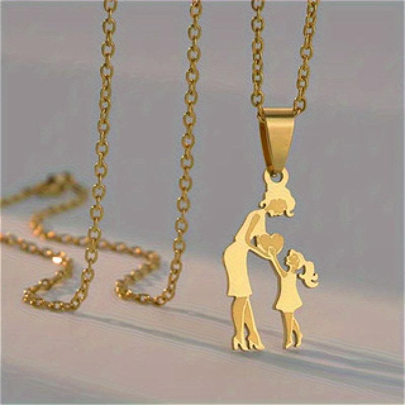 Show your love for your mother with this beautiful stainless steel pendant necklace. This French style piece features a golden tone heart symbolic of mother's love. It's a versatile and elegant gift for mothers that can be worn year-round.