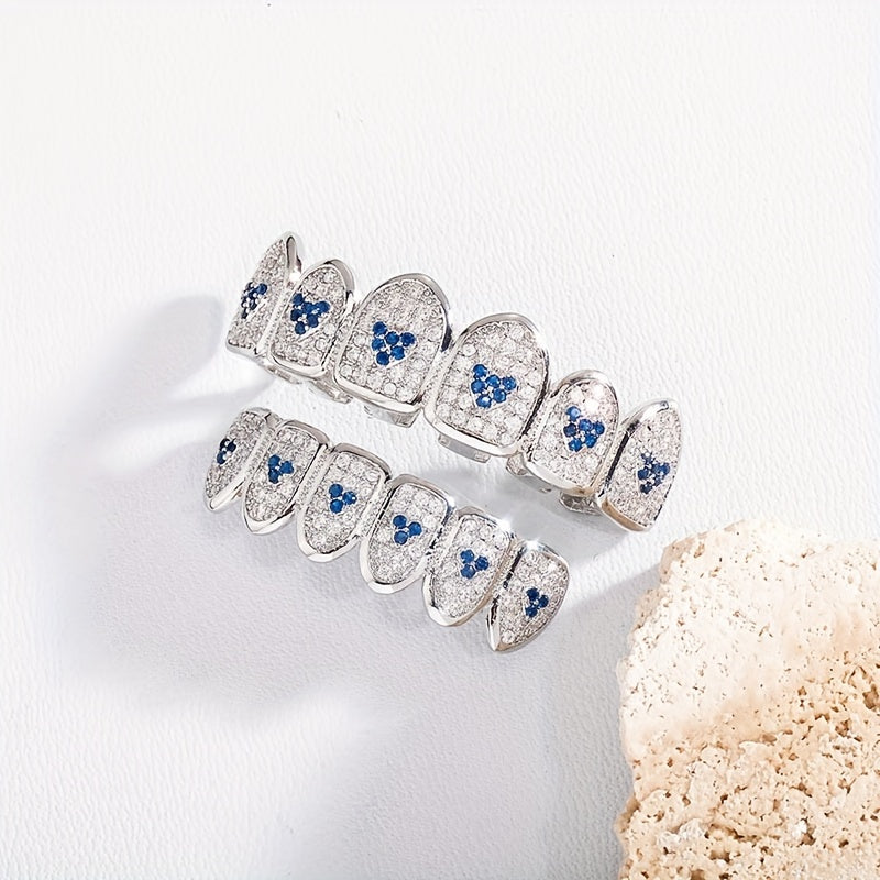 Hip Hop Double CZ Teeth Braces Set - Rapper Costume Cosplay