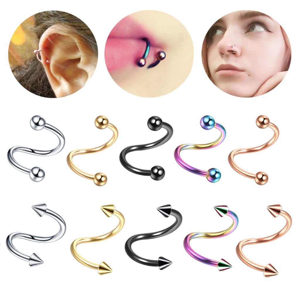 Add some flair to your look with this stainless steel hip hop S shape lip, eyebrow, or nail ring.