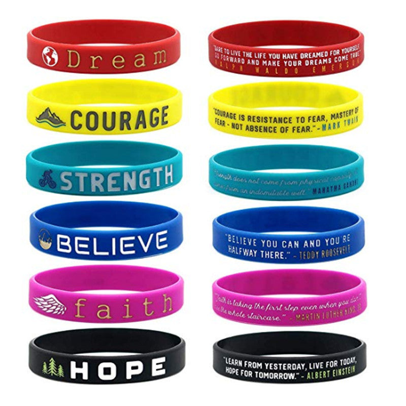 This silicone bracelet serves as a constant reminder to have hope, faith, believe in your strength and courage to pursue your dreams.