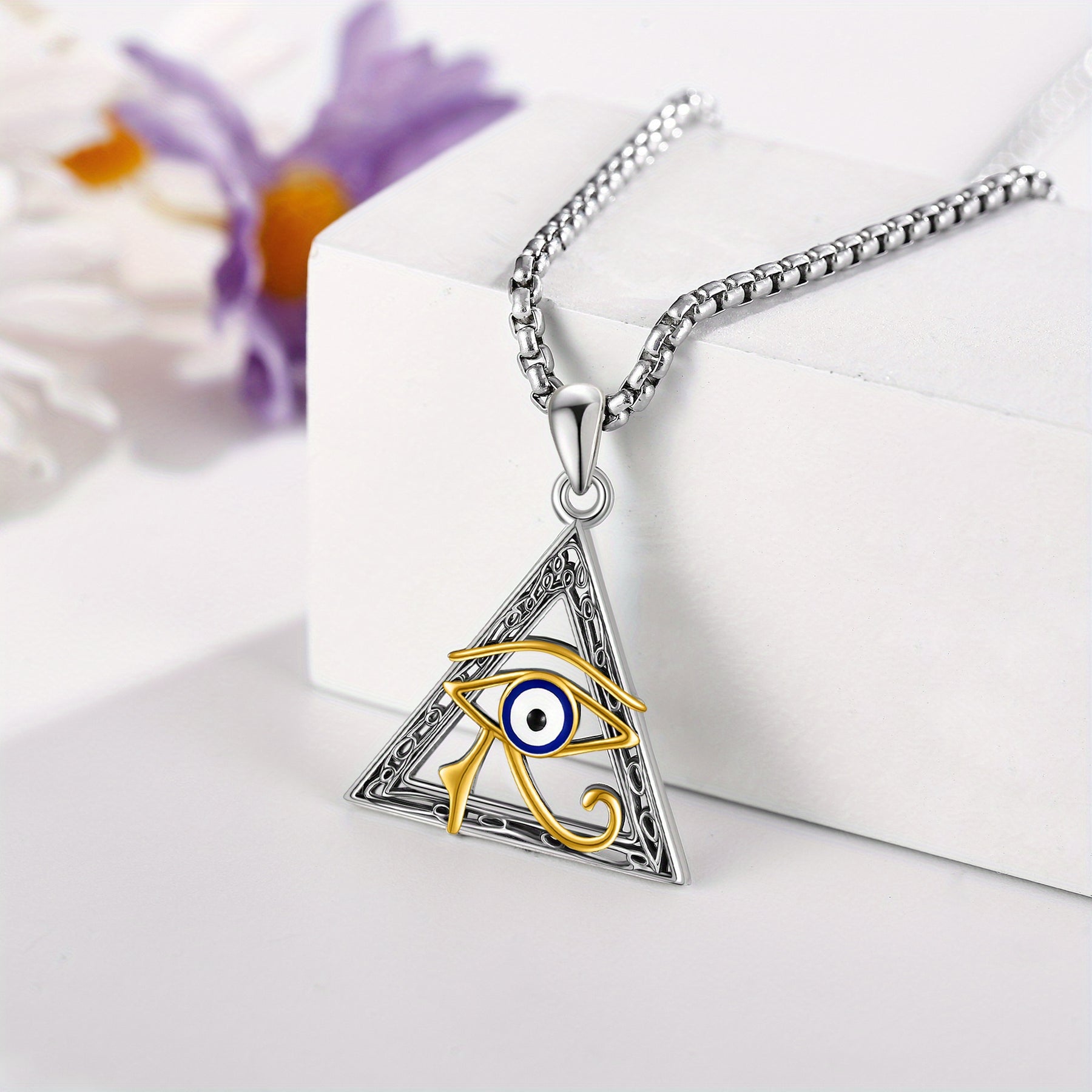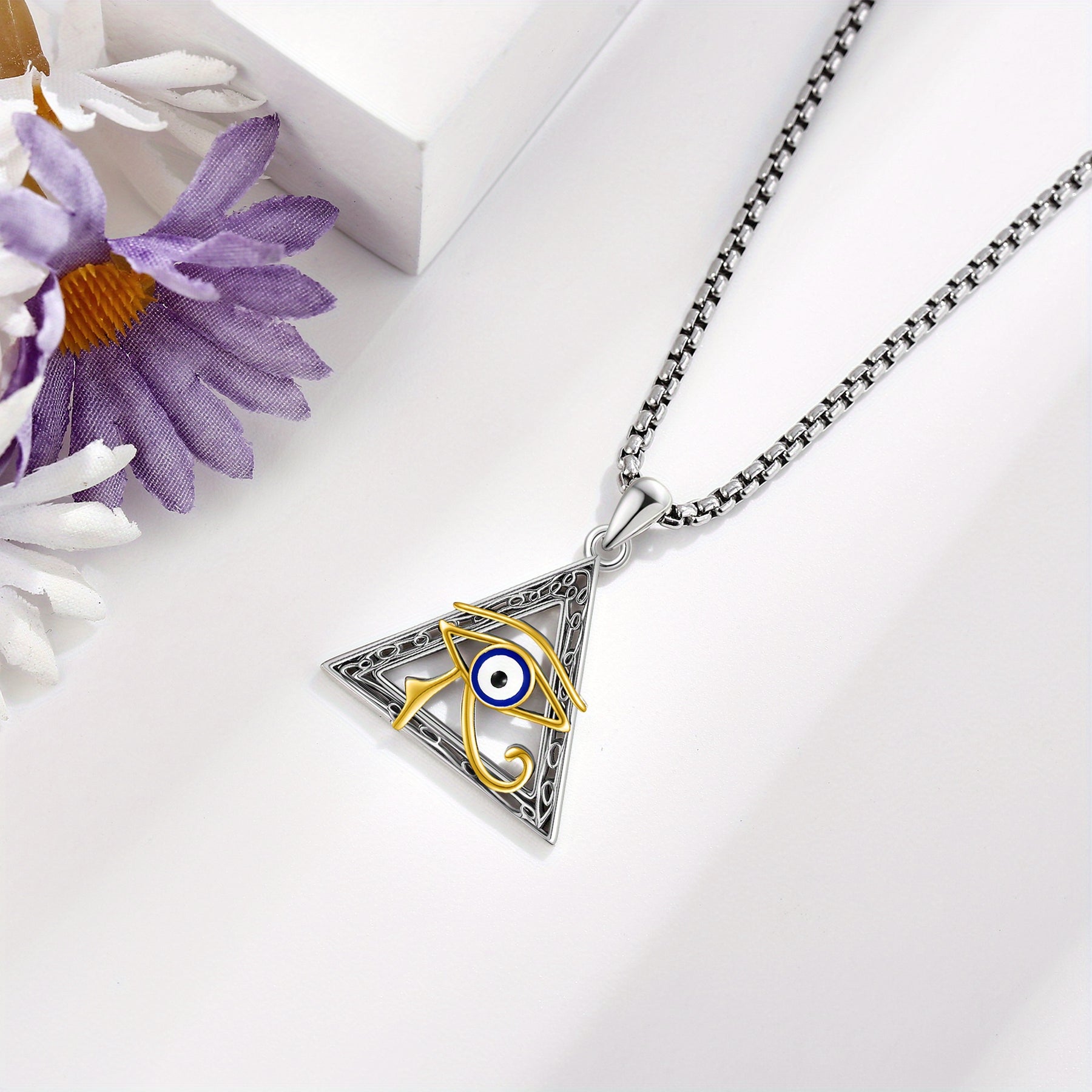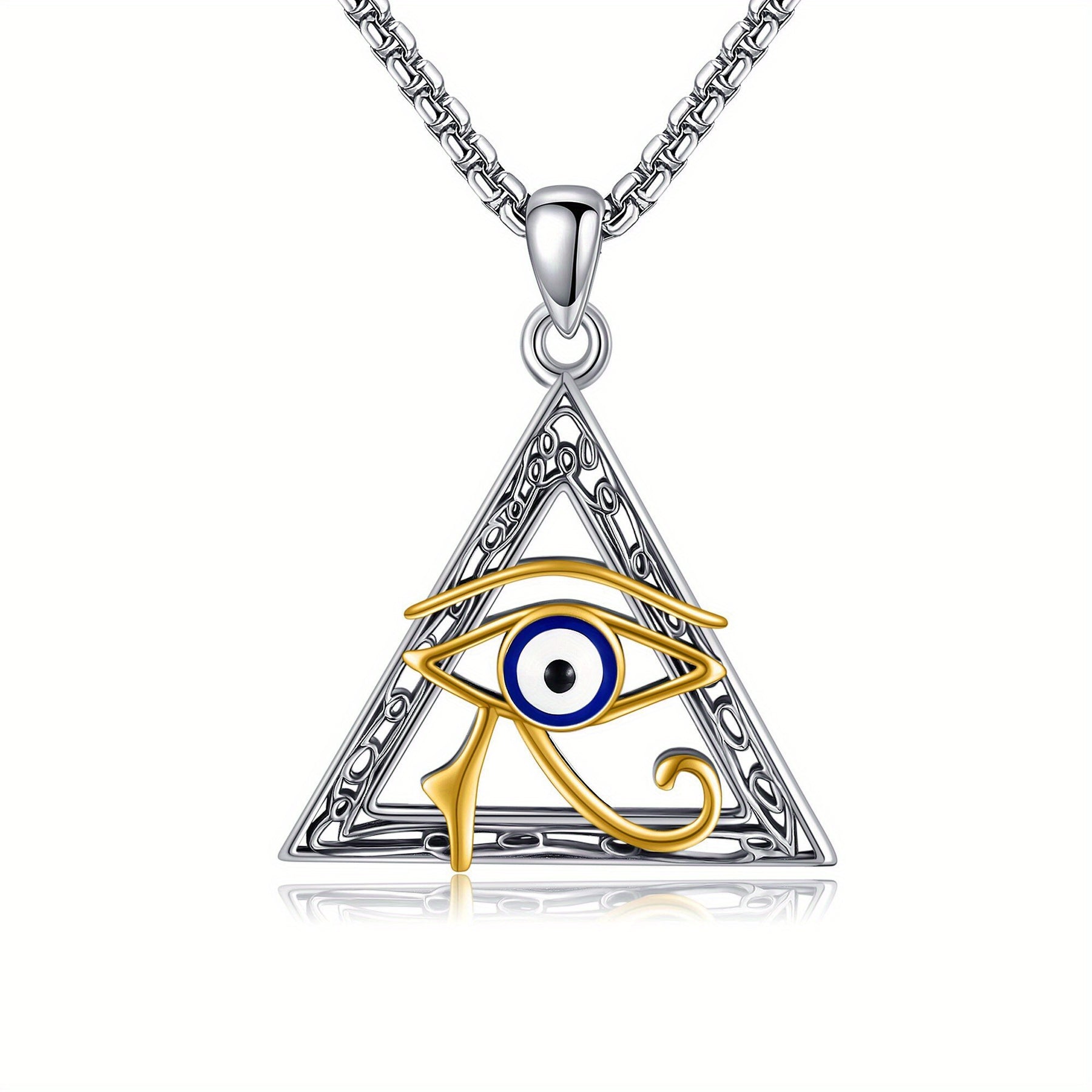 This Horus Eye necklace is crafted from 925 sterling silver, featuring an exquisite design inspired by ancient Egypt. It makes a stunning addition to any jewelry collection.
