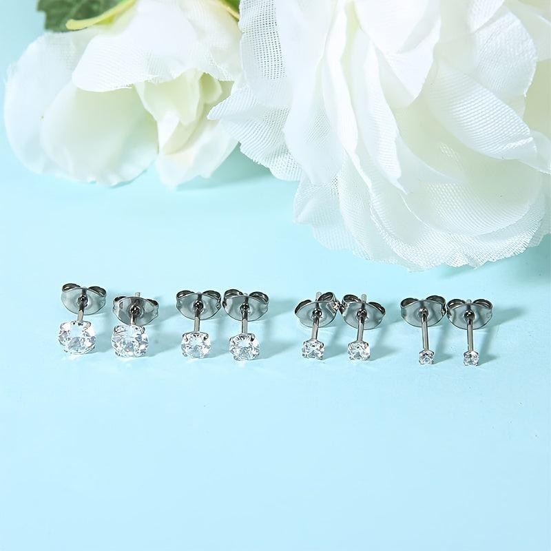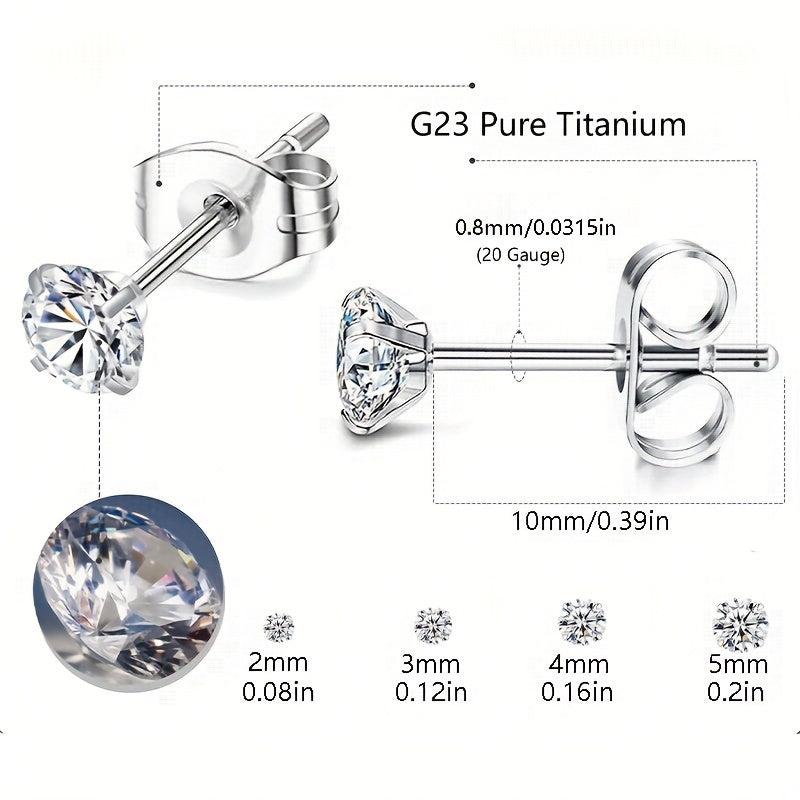 These titanium stud earrings are perfect for sensitive ears as they are hypoallergenic and made with pure titanium. The set includes earrings with synthetic cubic zirconia for added sparkle.