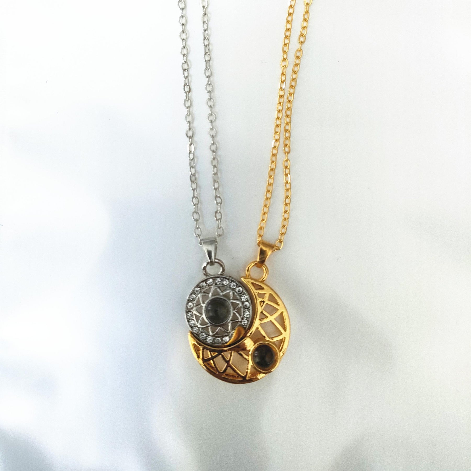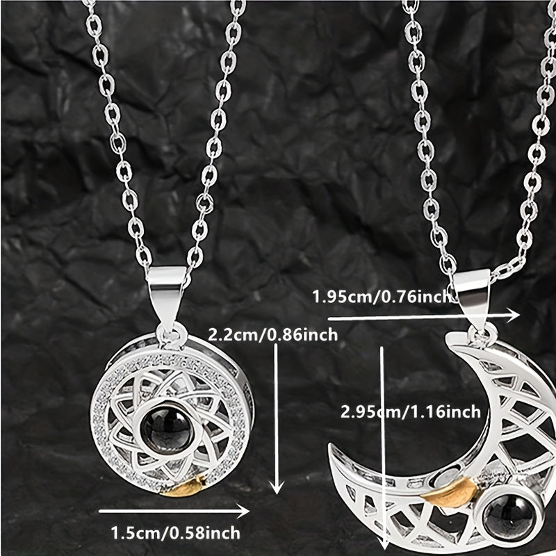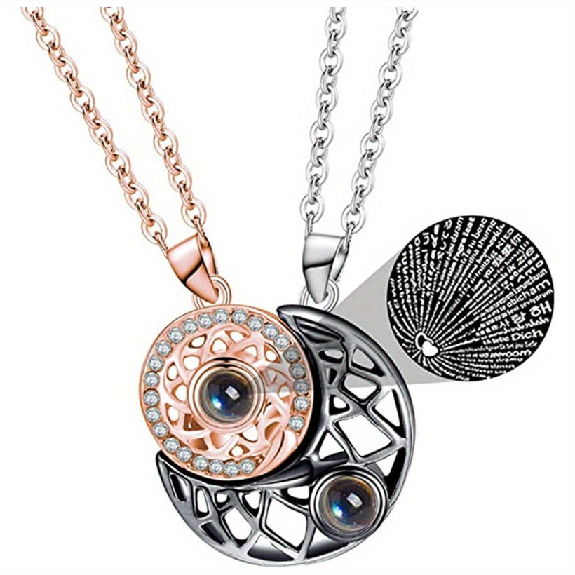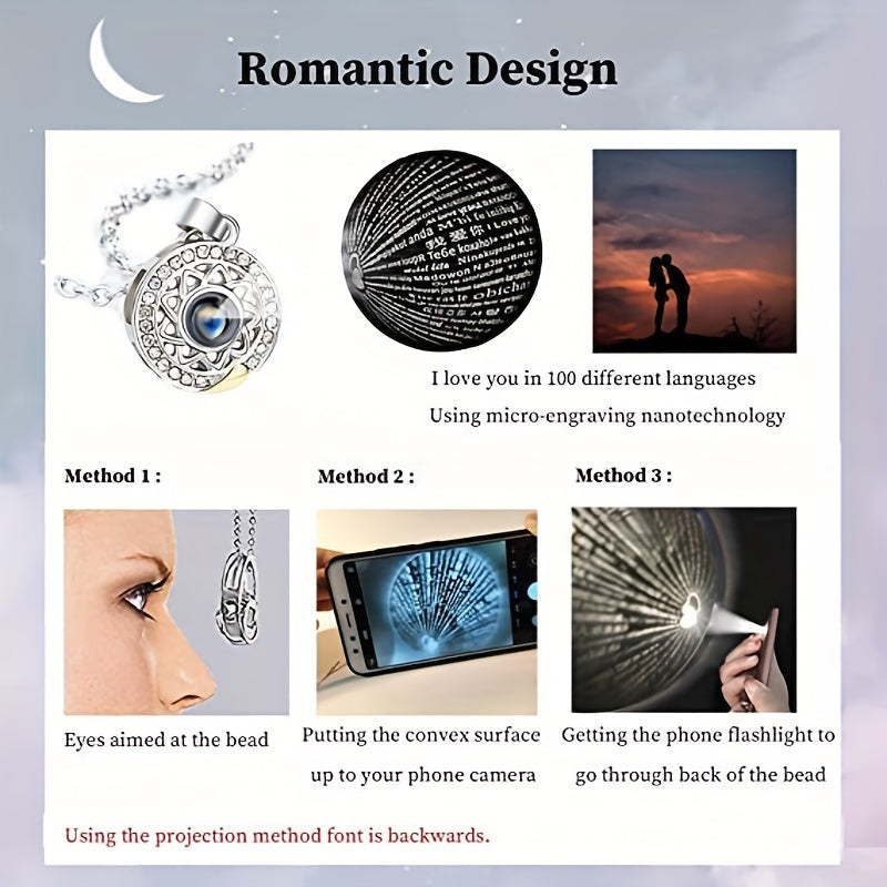 This set includes 2pcs projection necklaces that display "I Love You" in 100 languages. Perfect for couples, friends, or as a friendship gift. The jewelry is suitable for men and accessorizes any outfit.