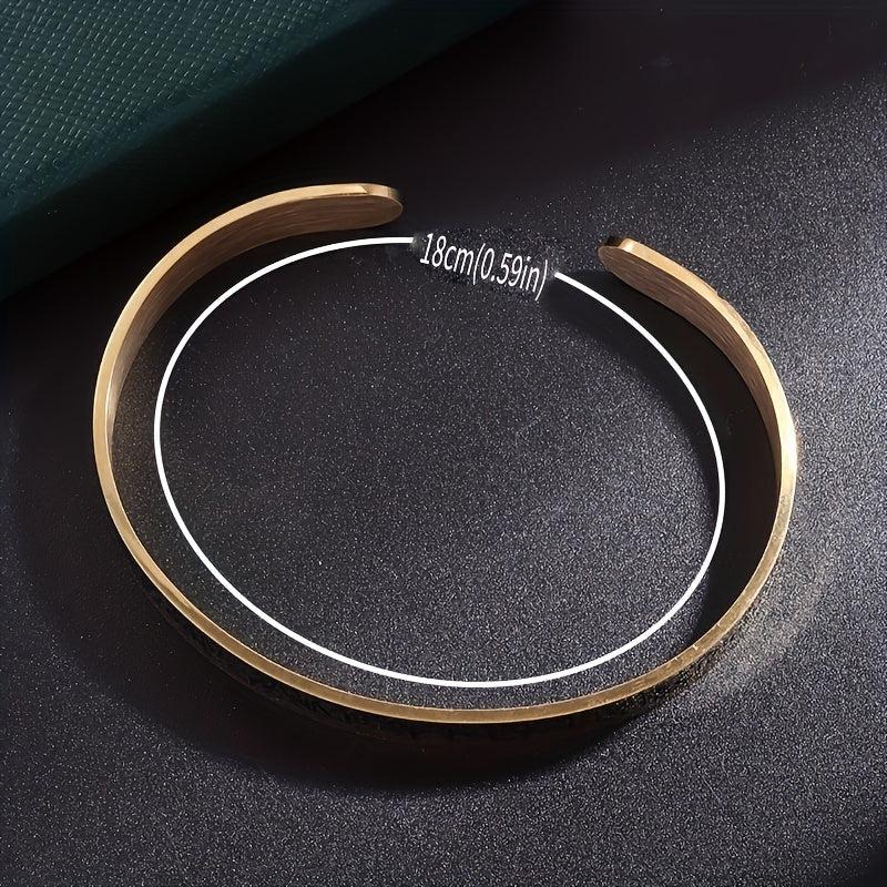 This stainless steel cuff bracelet features Ayatul Kursi Quran verse and Arabic calligraphy. Perfect for Muslim men.