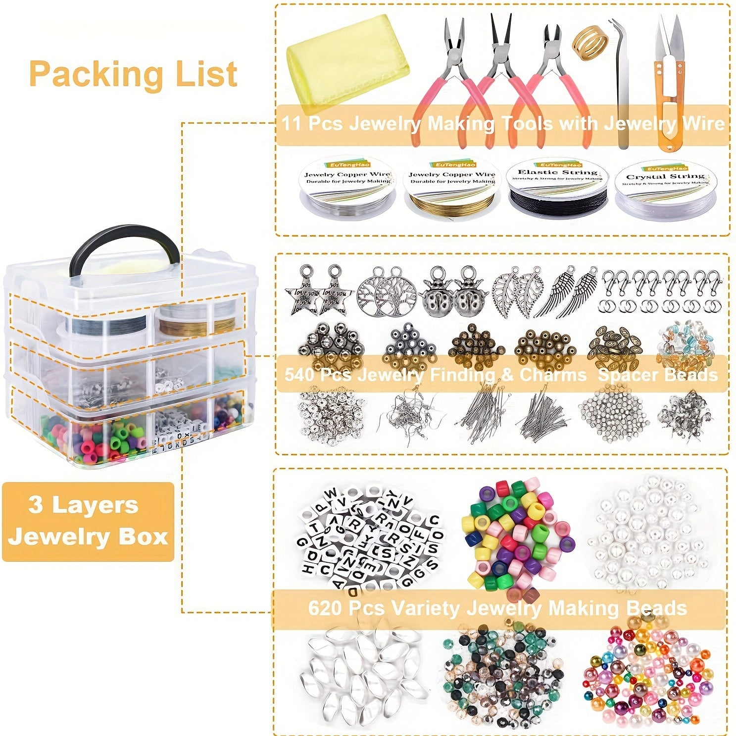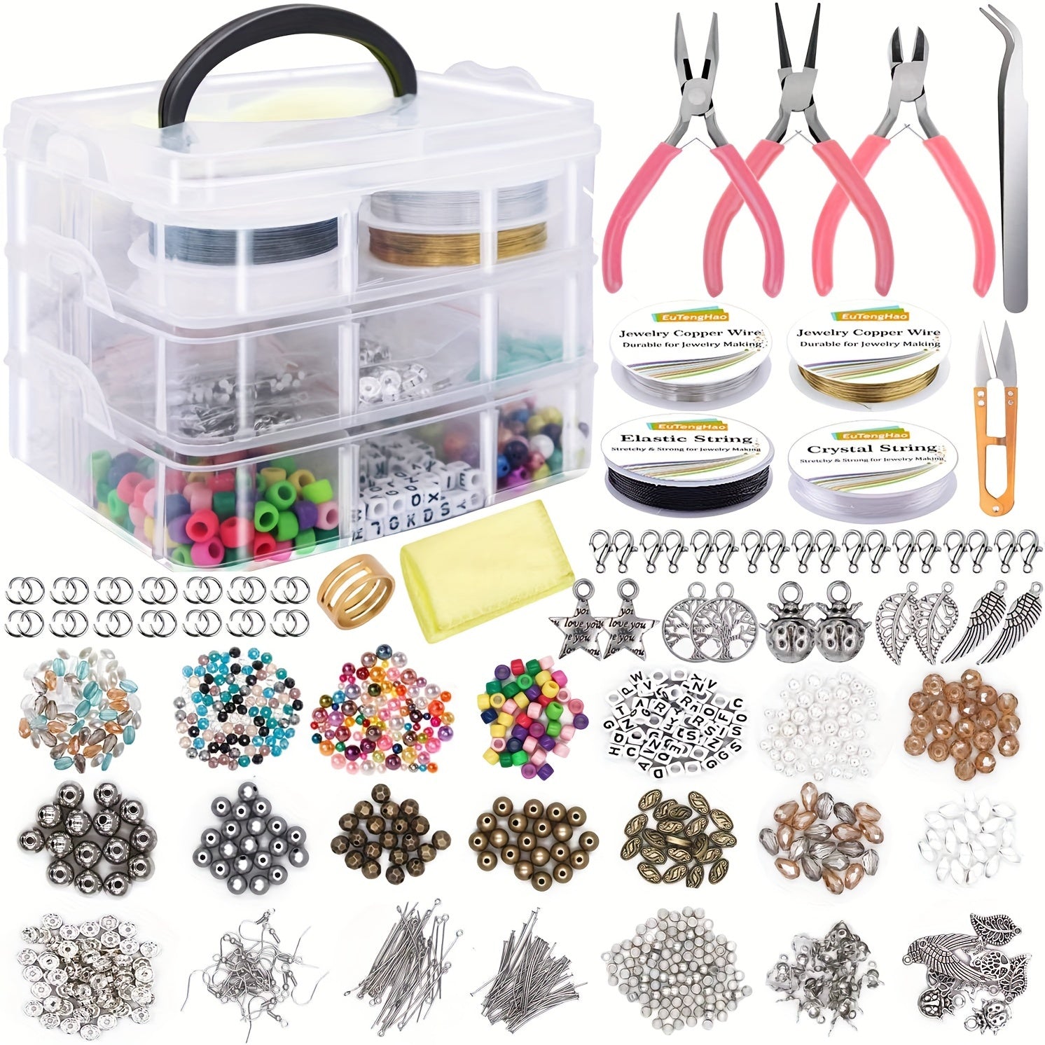 This jewelry making supplies kit includes beads, charms, wire, cord, pliers, caliper, necklace, and earrings. Everything you need to create beautiful jewelry pieces!