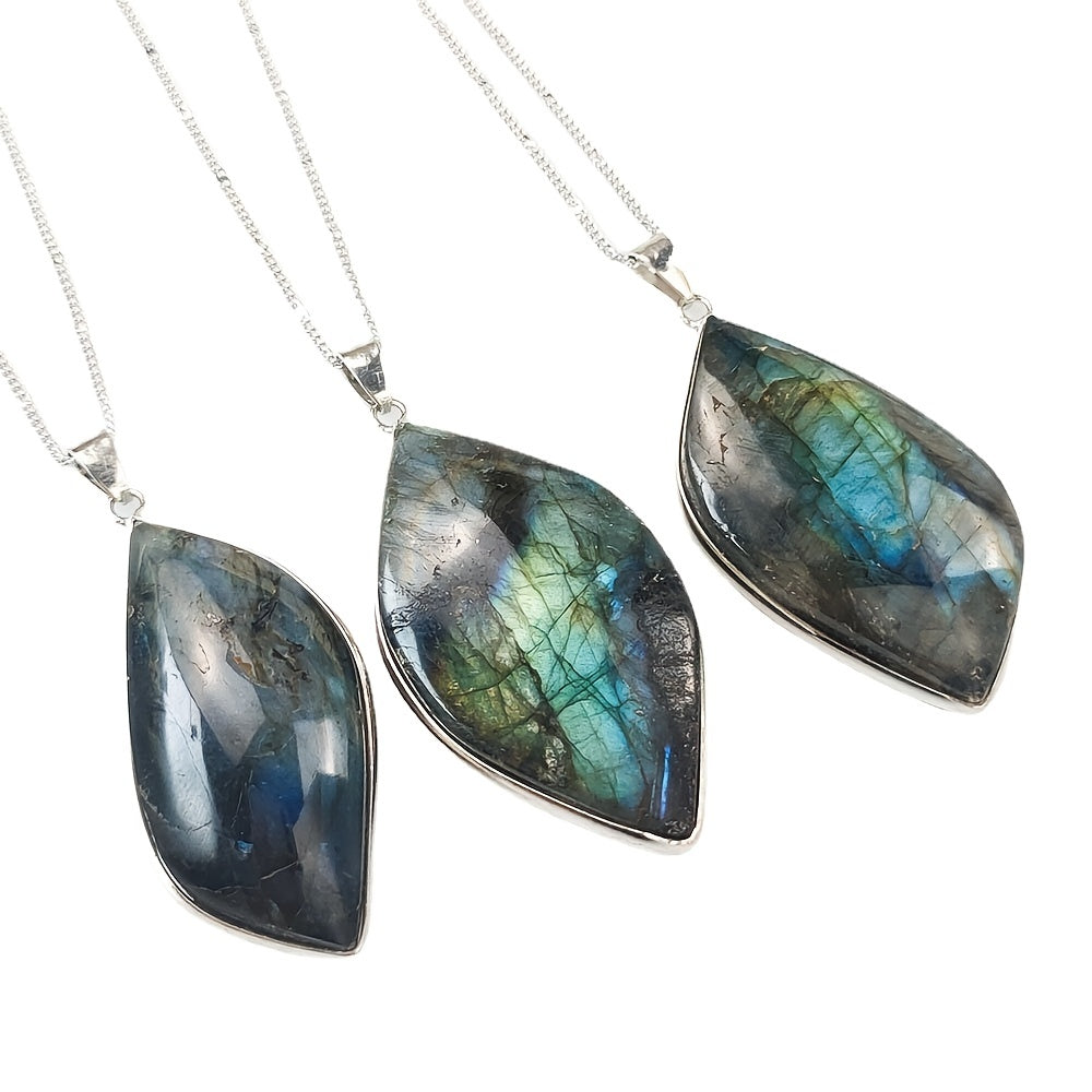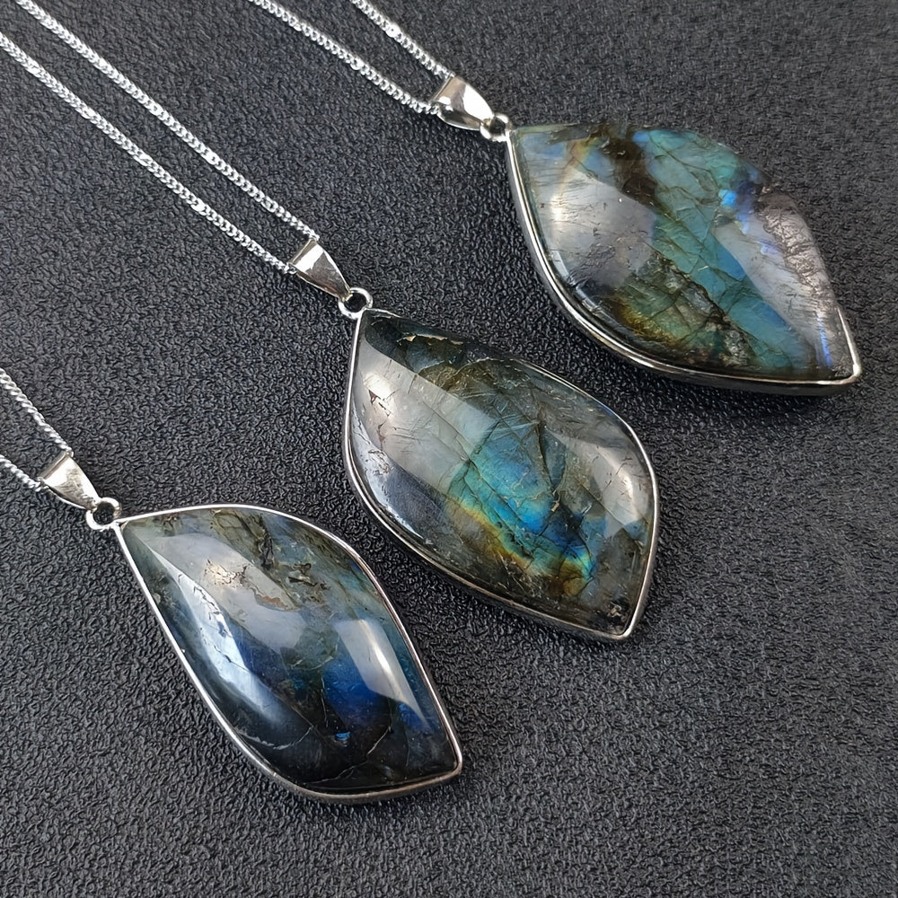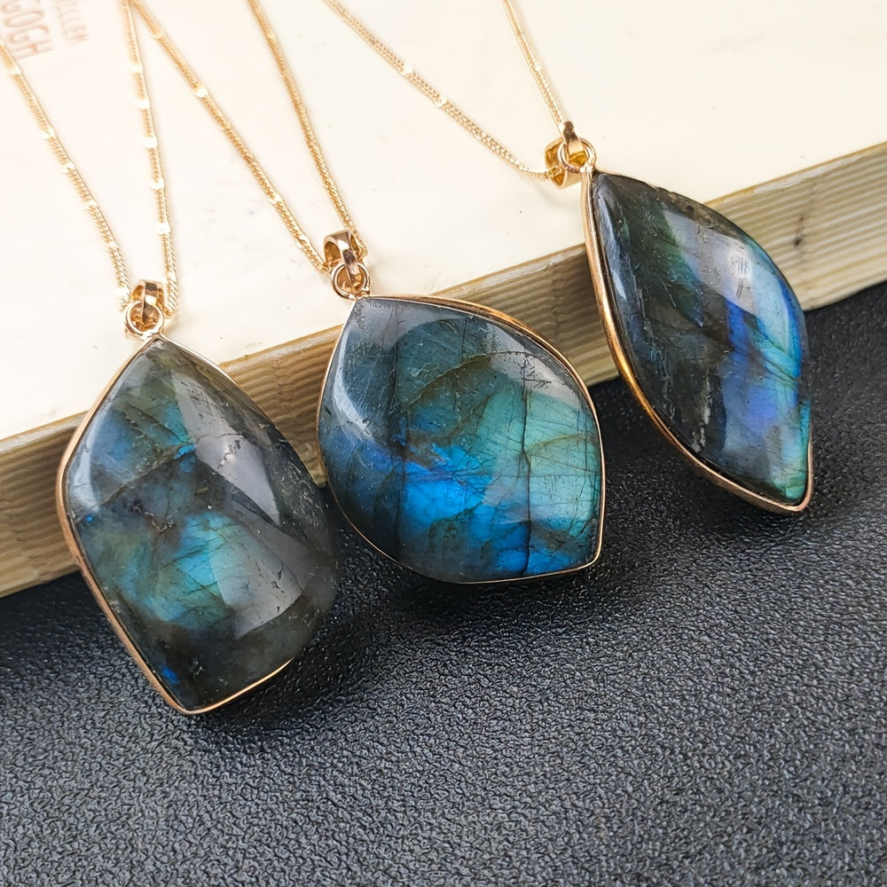 This natural labradorite leaf shaped stone pendant necklace is a perfect accessory for men, suitable for parties and daily wear.