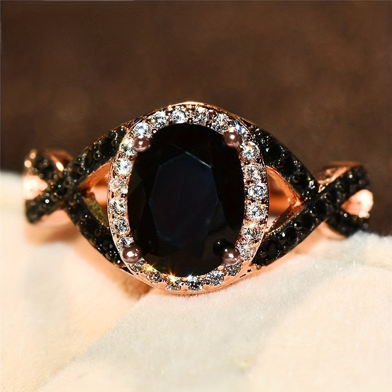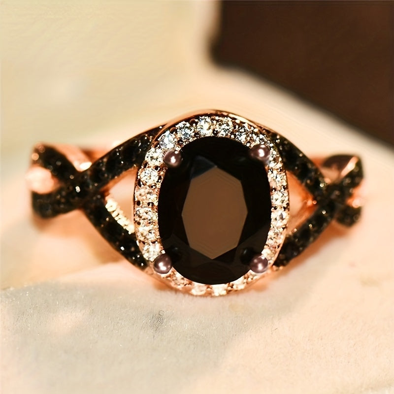 Elegant and stylish, this large oval stone X ring is perfect for weddings. Made with sparkling zircon stones, it's a beautiful bridal engagement ring.