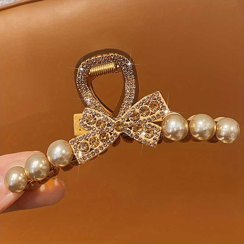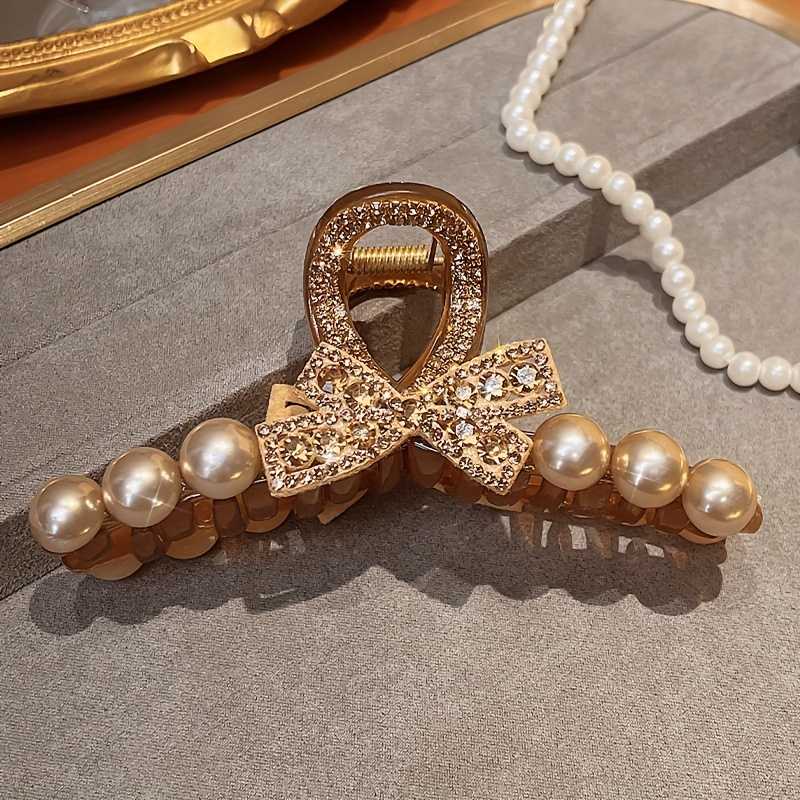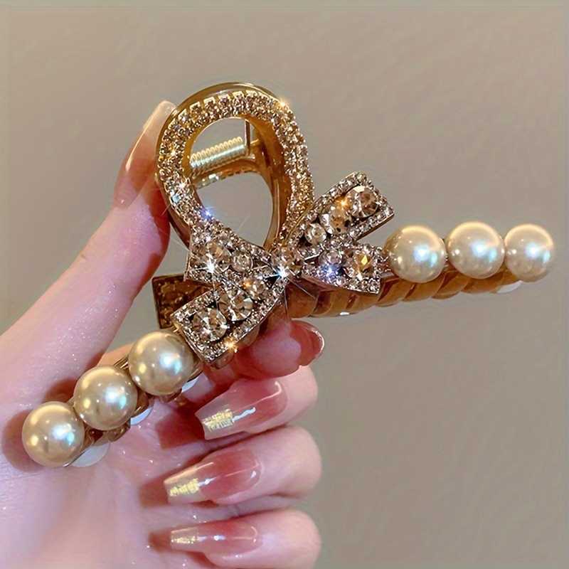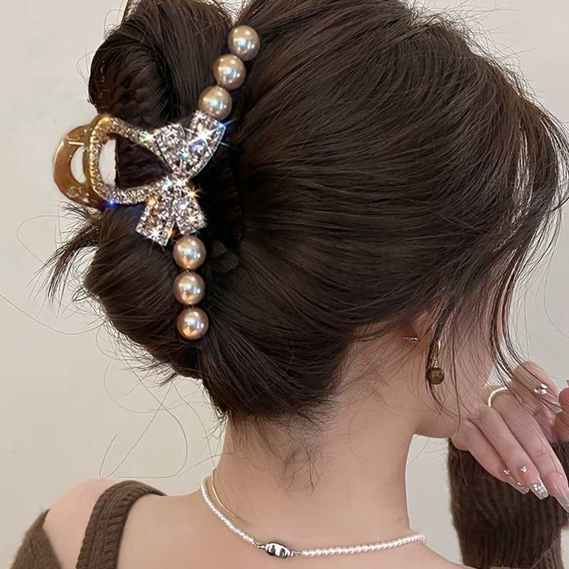 Large Pearl Hair Claw Clip Elegant Vintage Style for Thick Long Hair Women