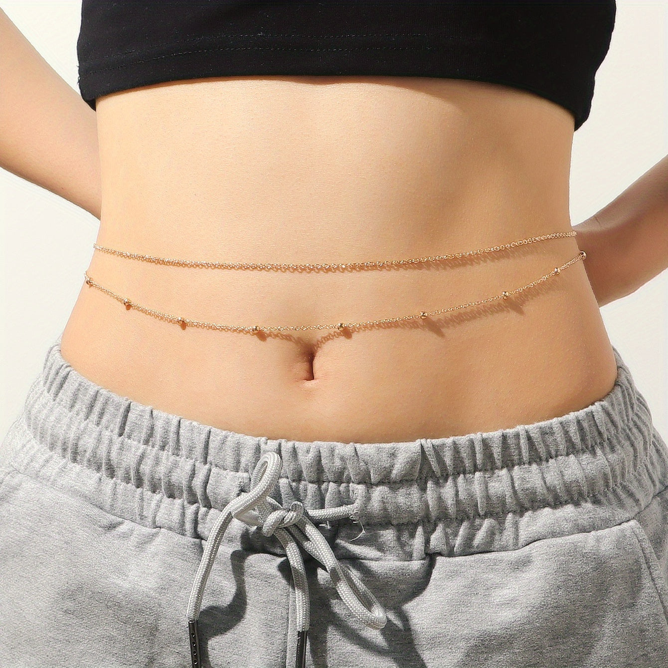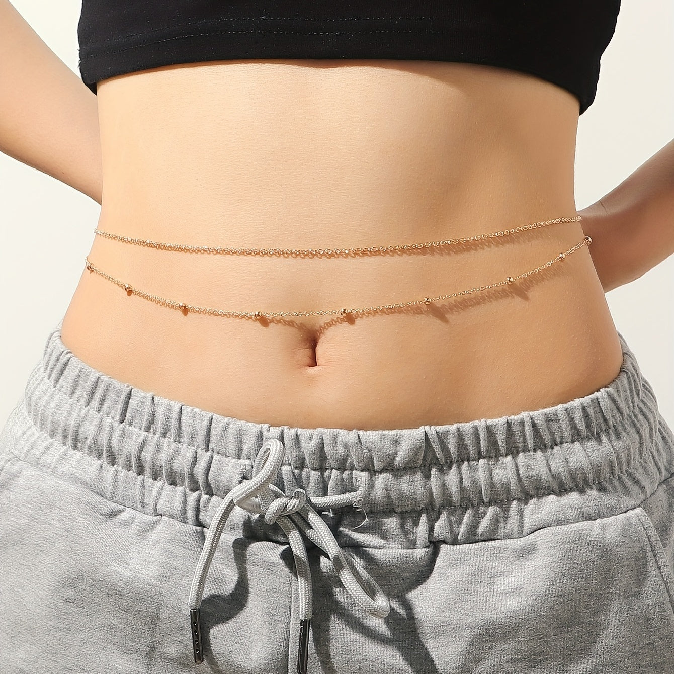 This layered belly body chain with metal bead waist chain is perfect for summer beach wear. It is a stunning jewelry piece designed for women and girls.