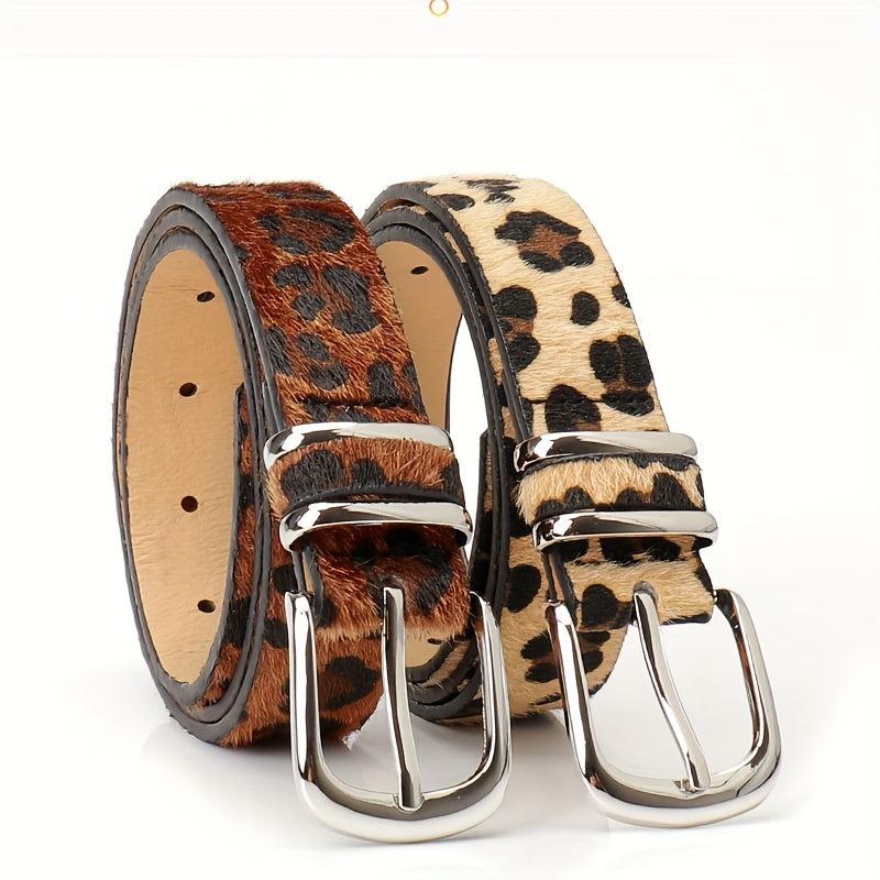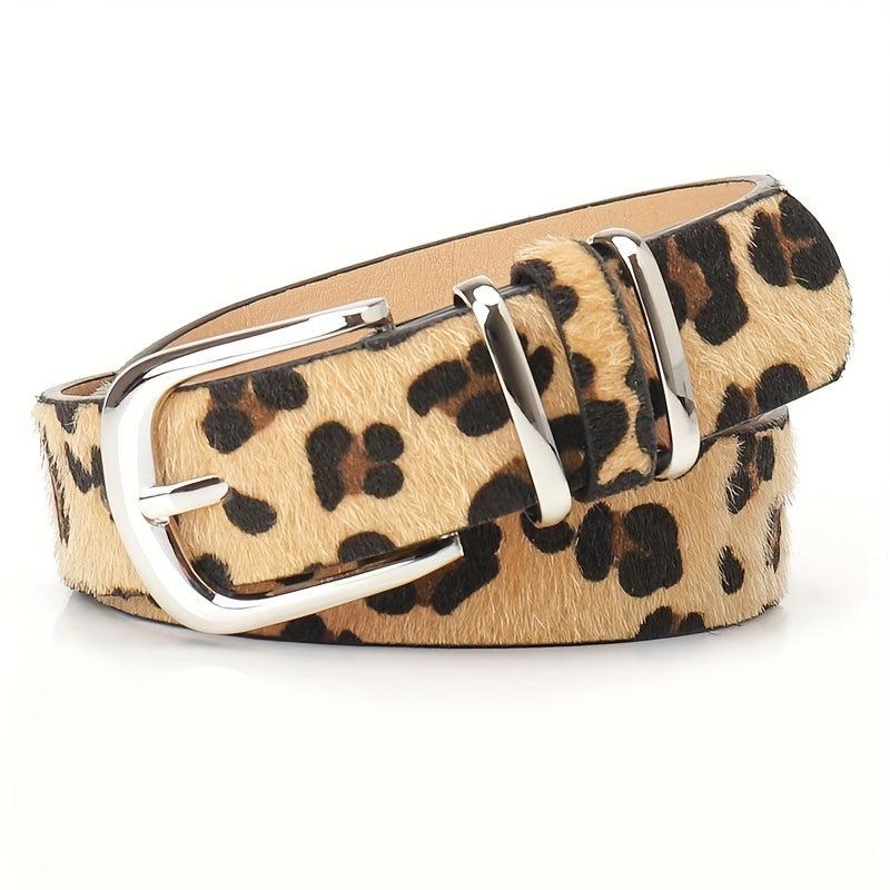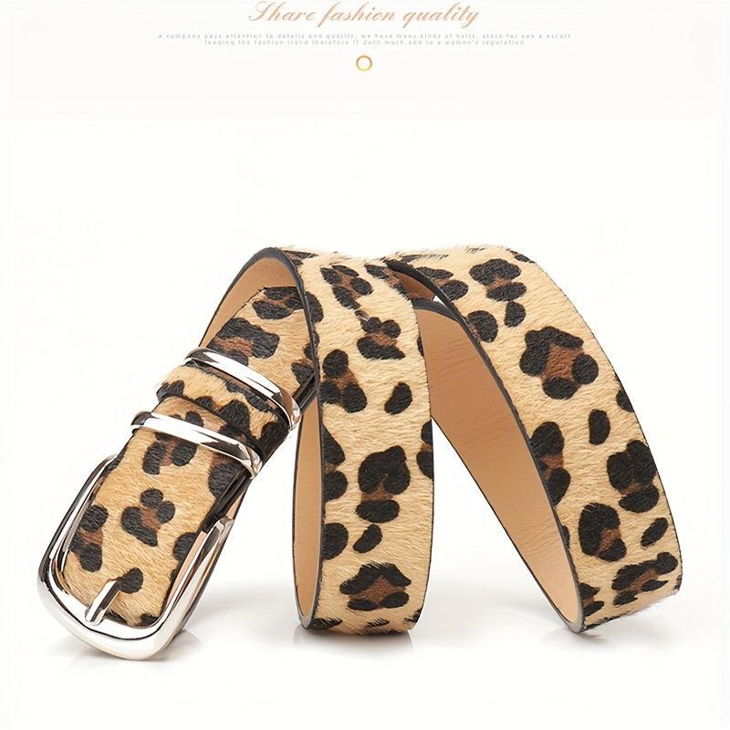 Add a touch of style to your outfit with this leopard print belt featuring a double prong clasp. Perfect for enhancing your weekend look with a mature and trendy accessory.