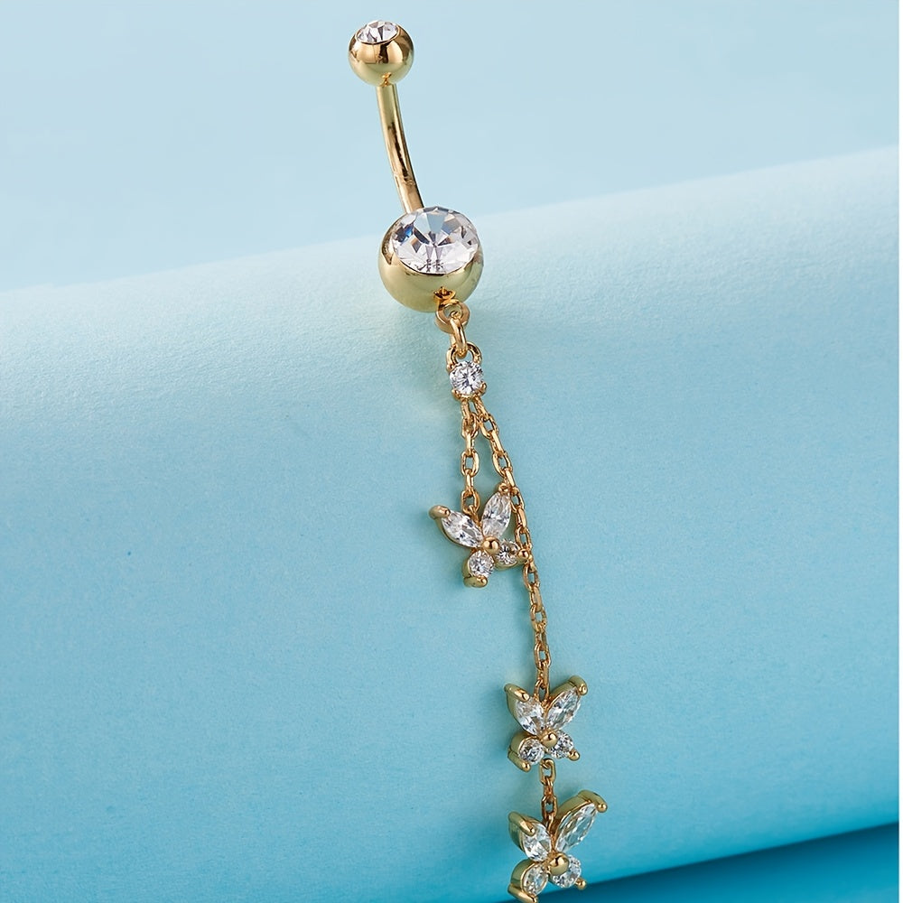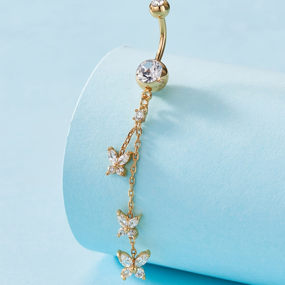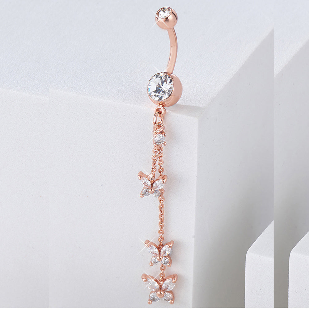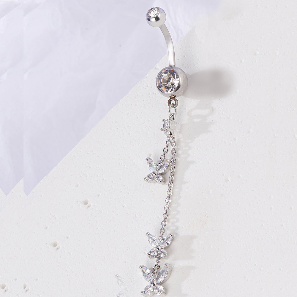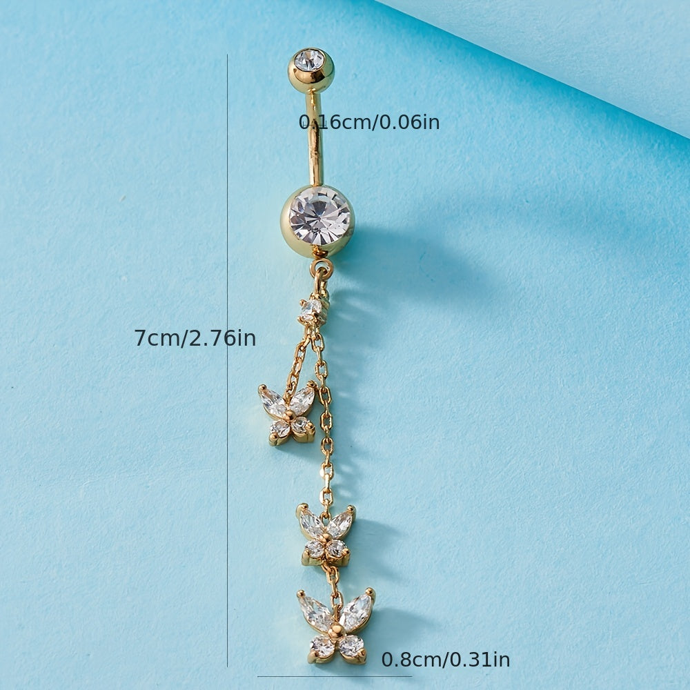 This butterfly shape pendant belly button ring is a sweet and stylish body piercing jewelry. It features a long chain dangle design that adds a touch of elegance to your belly decor.