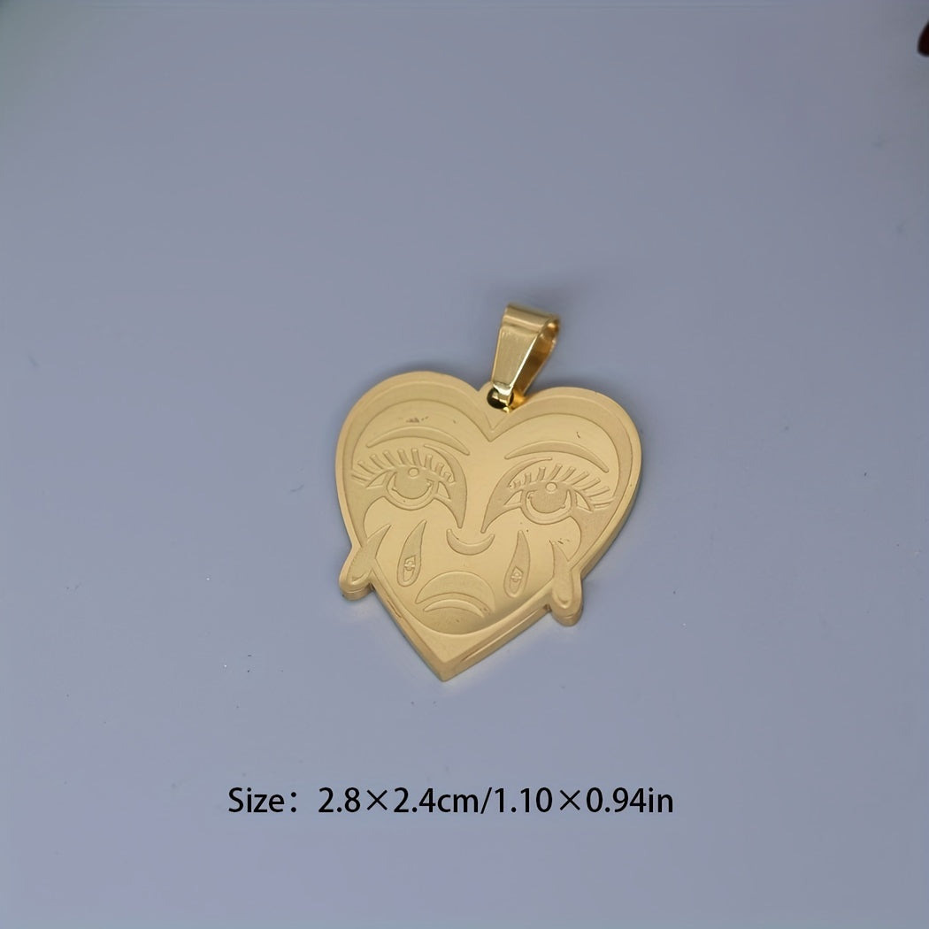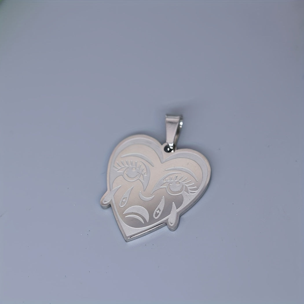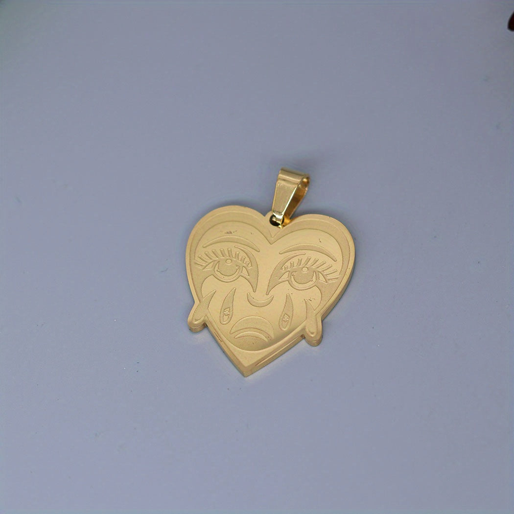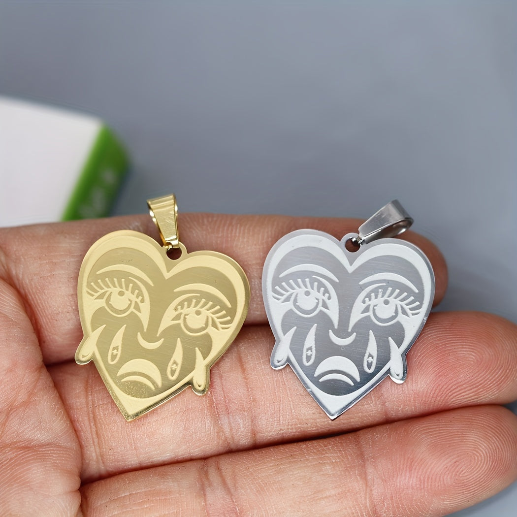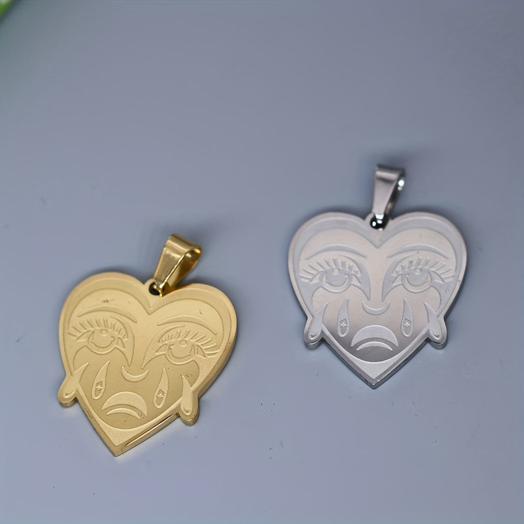 This stainless steel charm pendant features a love shaped crying heart design, perfect for necklace, bracelets, jewelry crafts making, findings, etc.