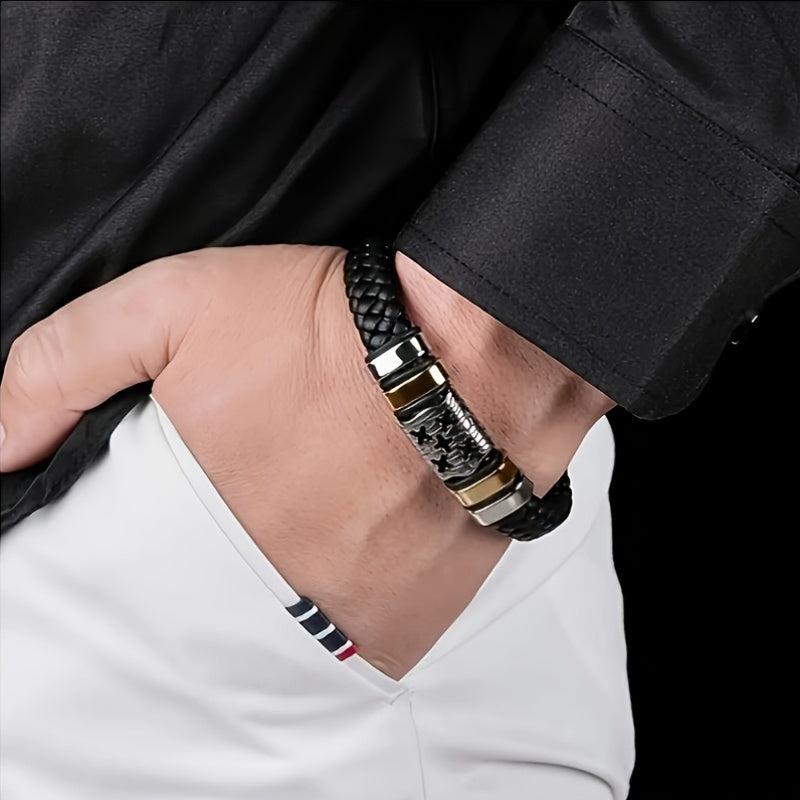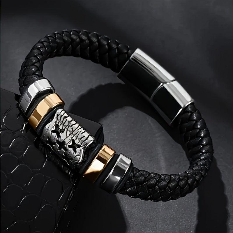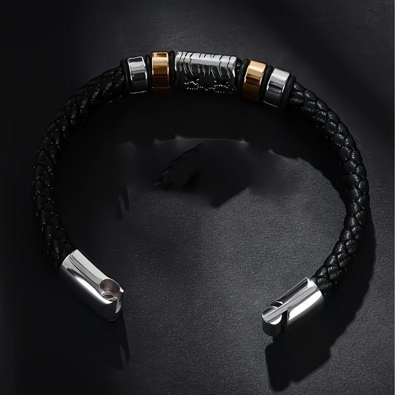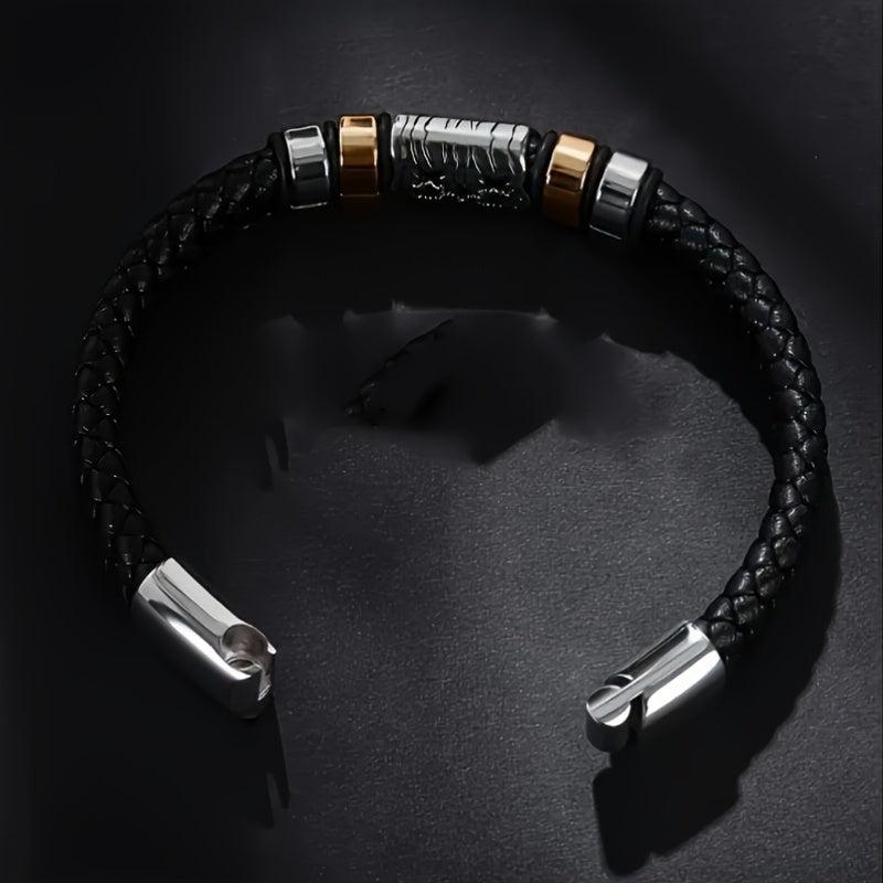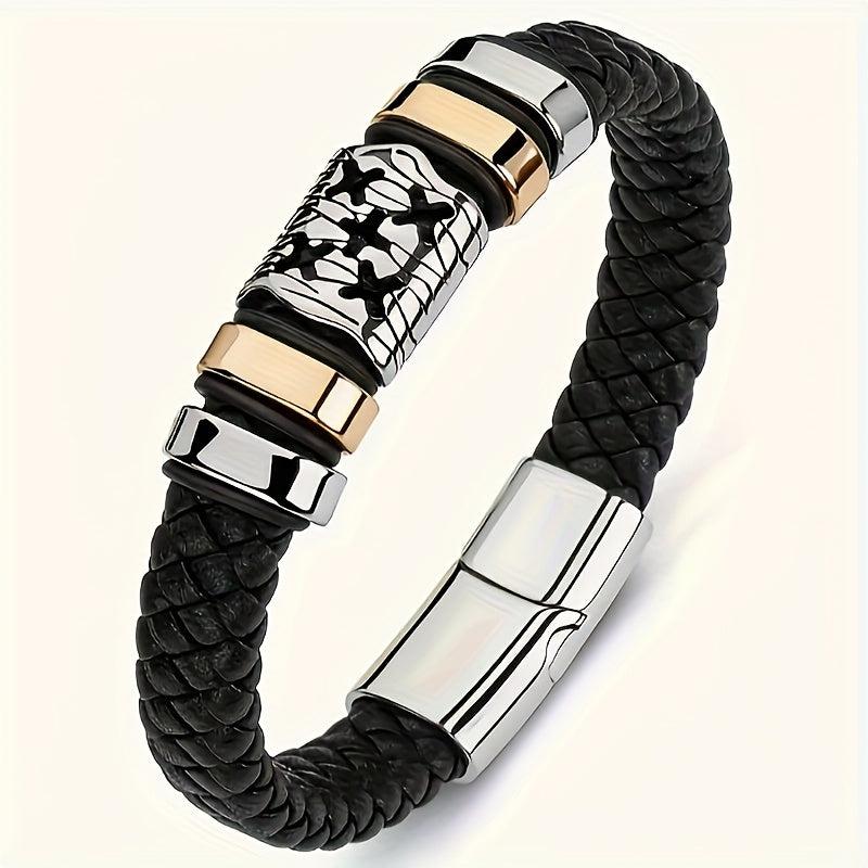 Add a touch of style to your casual look with this faux leather wristband. The braided design adds a trendy touch to your outfit.