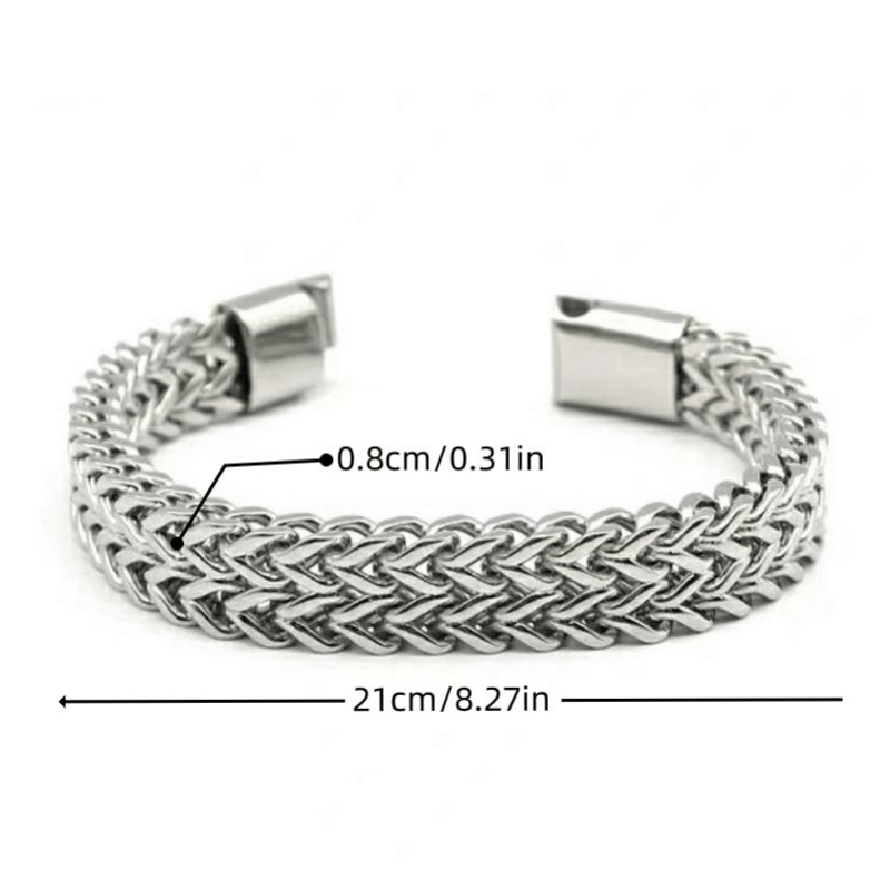This stylish men's bracelet features a durable stainless steel Cuban link chain design. Perfect for everyday wear or special occasions.