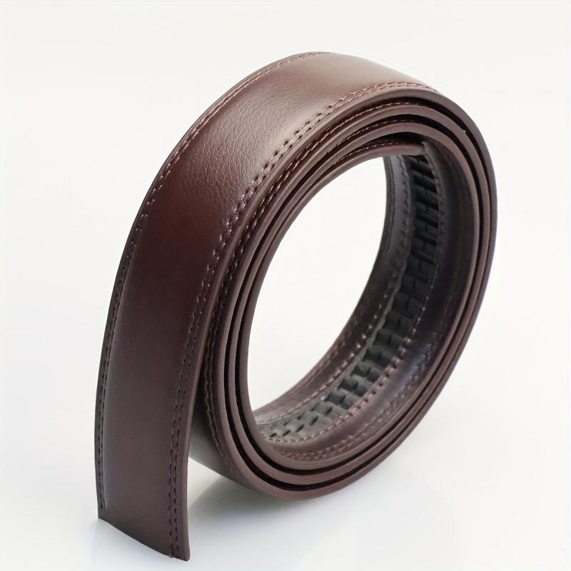 Upgrade your style with this classic men's faux leather belt featuring an automatic buckle.