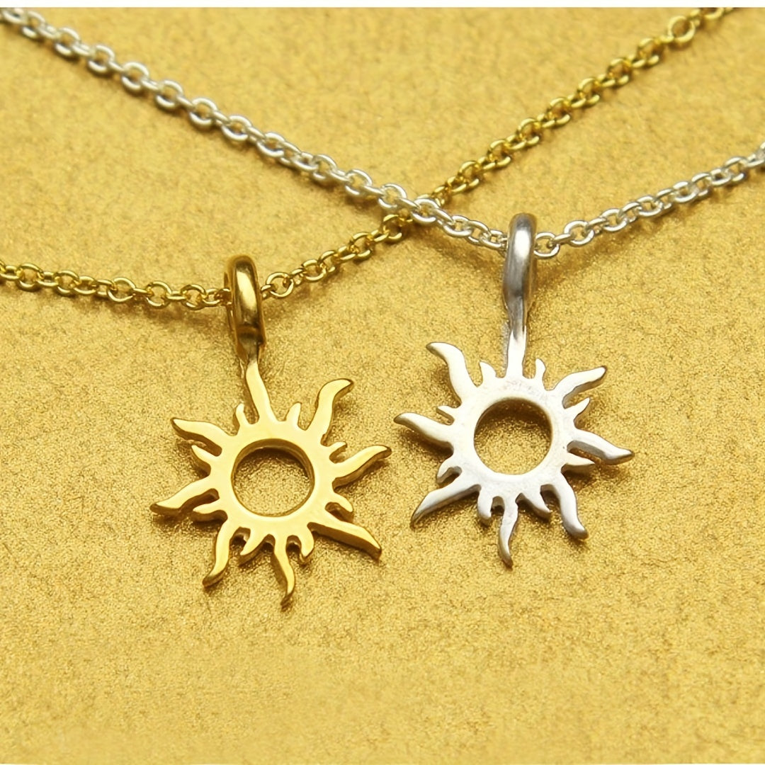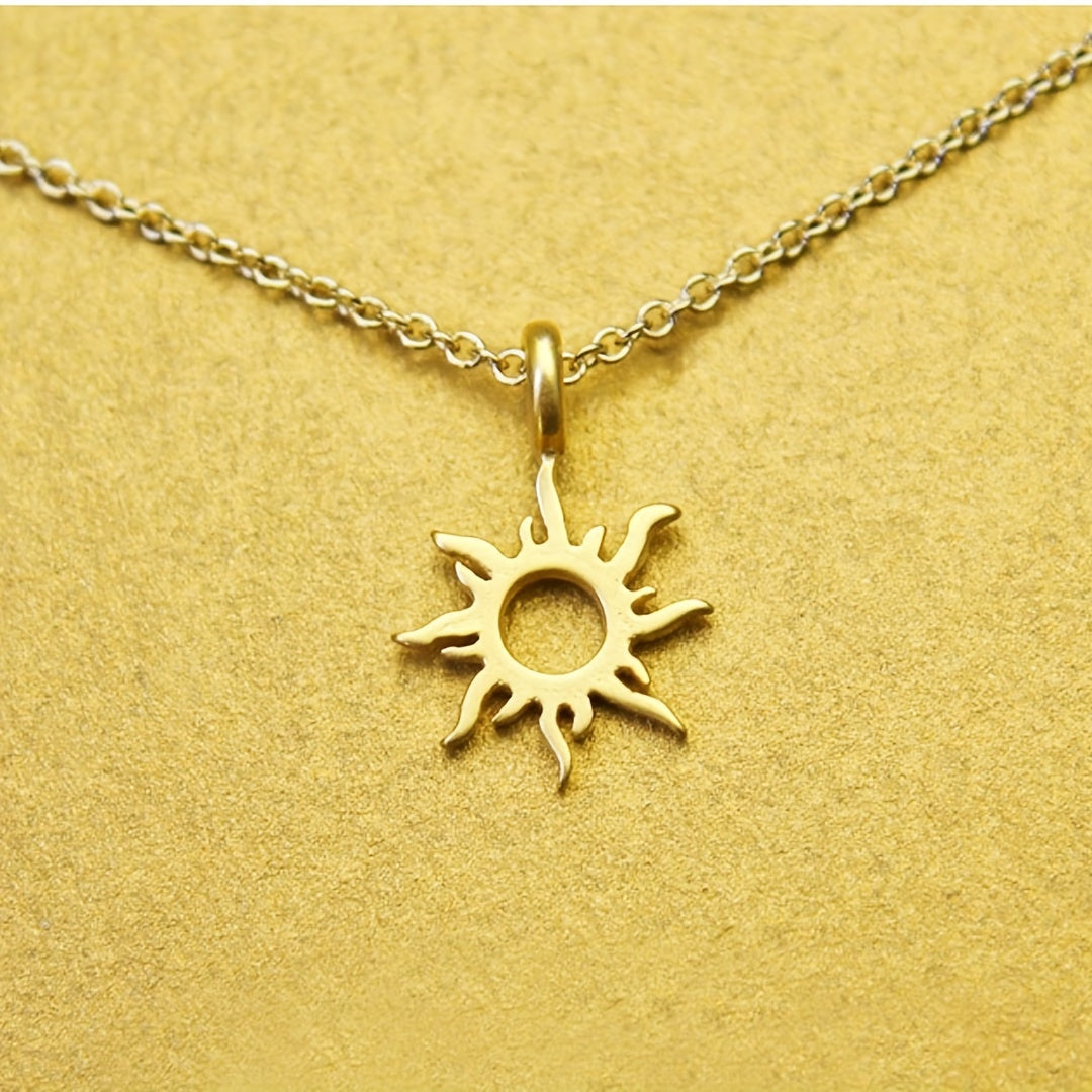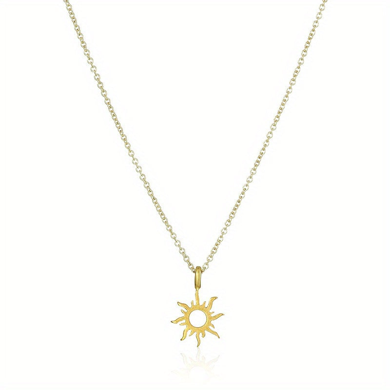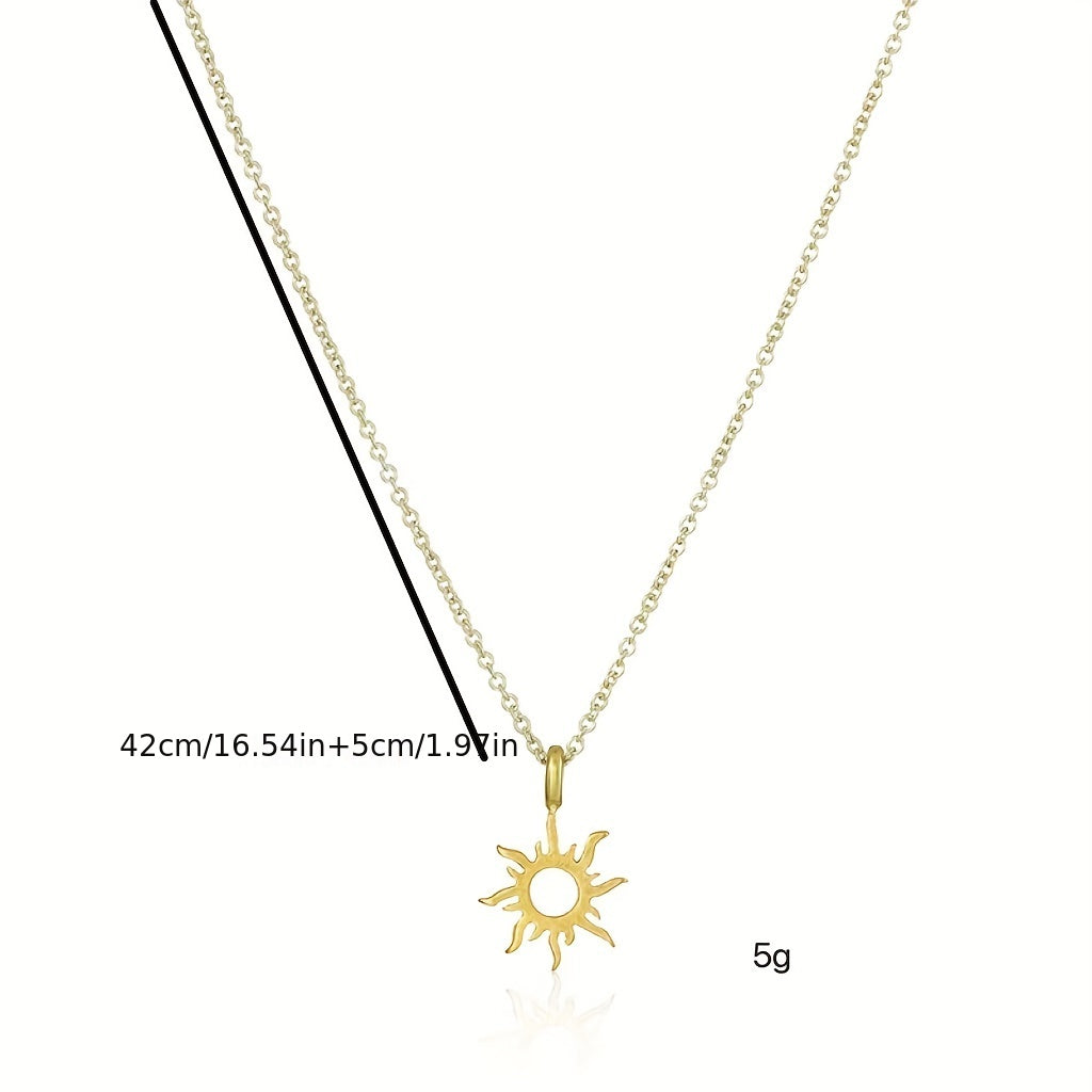 Stylish men's necklace featuring a hollow alloy sun pendant design.