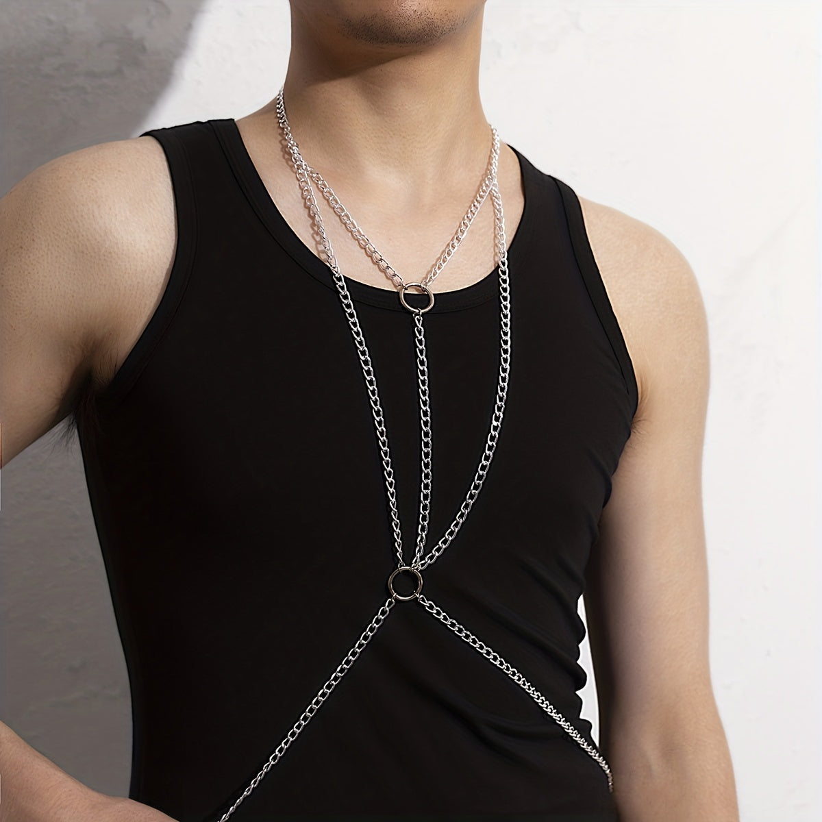 This stylish body chain is perfect for adding a touch of sophistication to your outfit. It can be worn with a variety of clothing styles and is a great accessory for men.