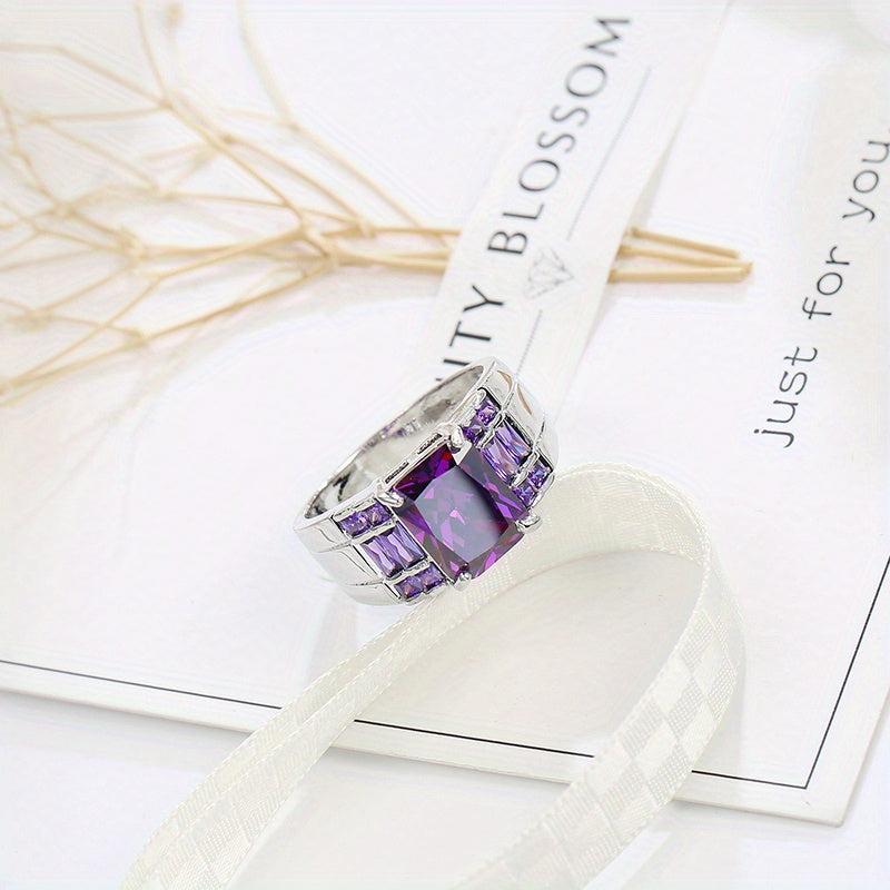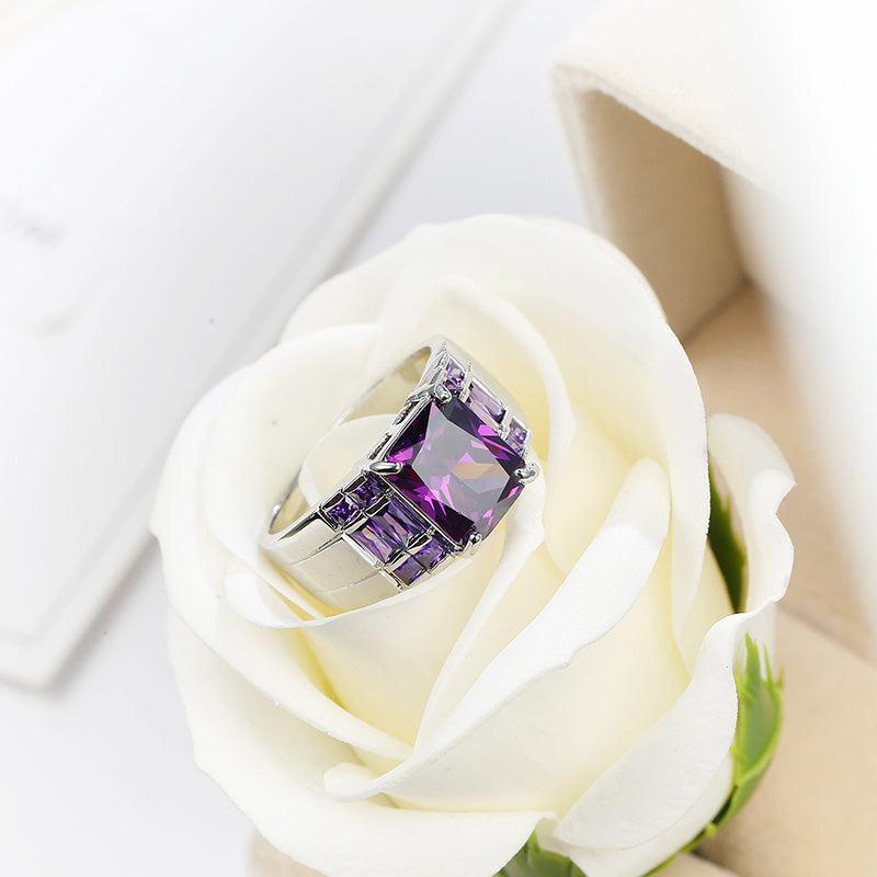 Surprise your loved one with this purple ring in a beige floral box, perfect for anniversaries and birthdays. The durable K platinum plating adds a touch of elegance to everyday and special occasions.
