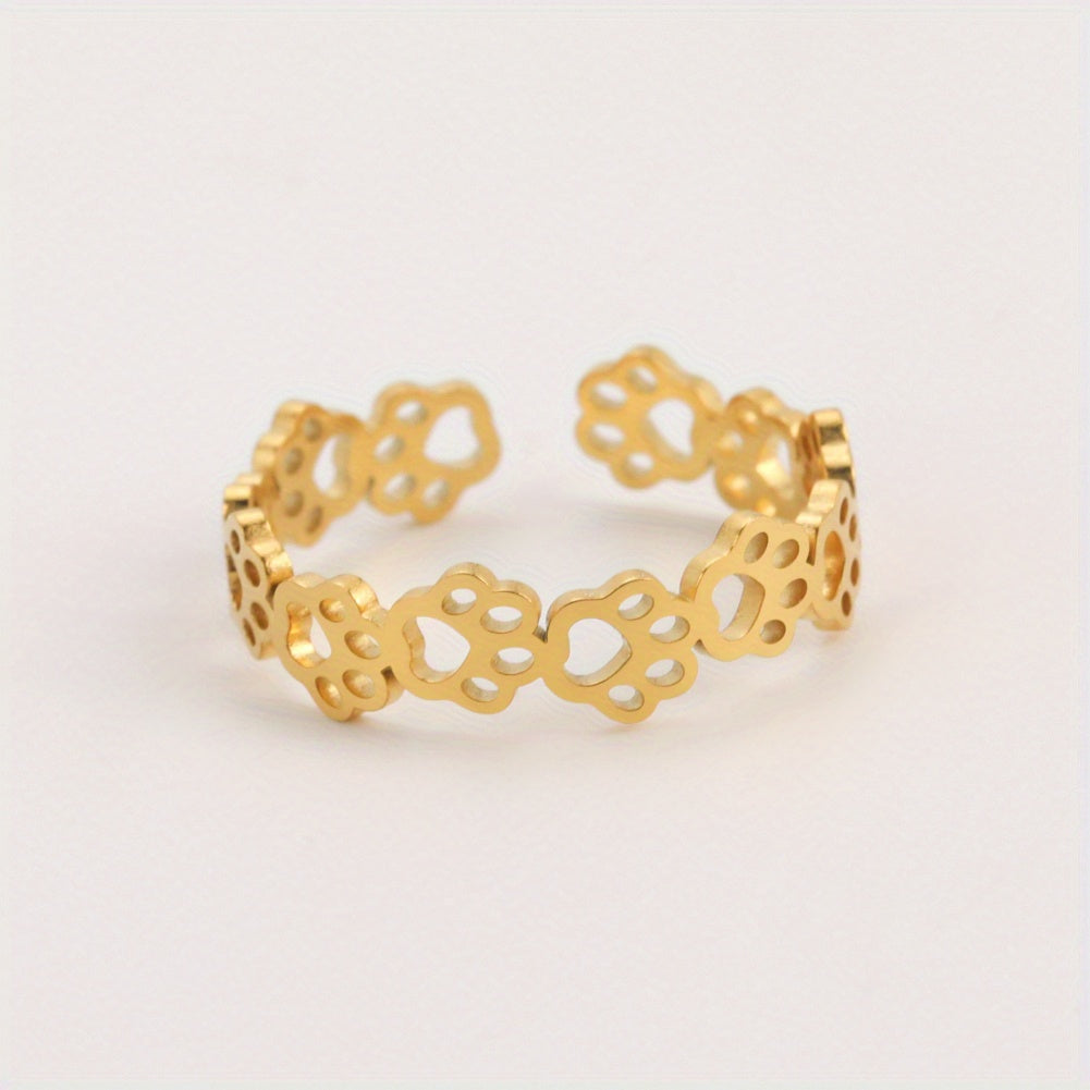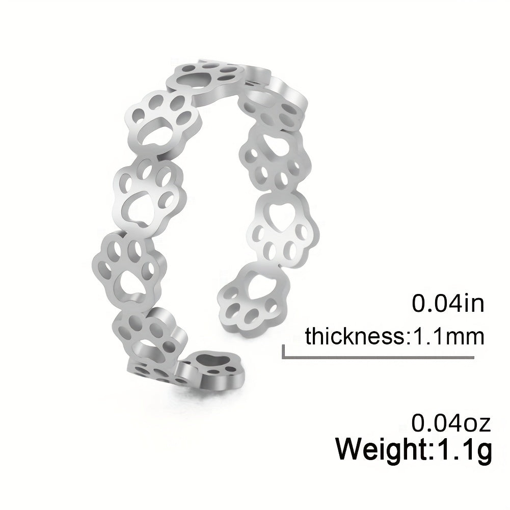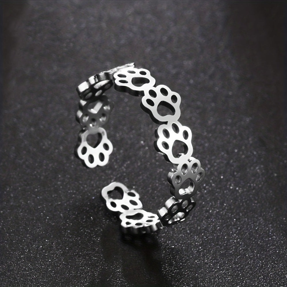 This adjustable ring features a unique cat paw design, made of stainless steel. Ideal for pet parties and everyday wear.