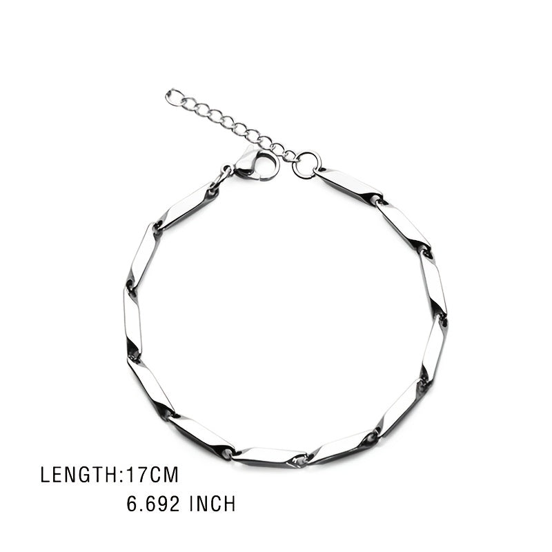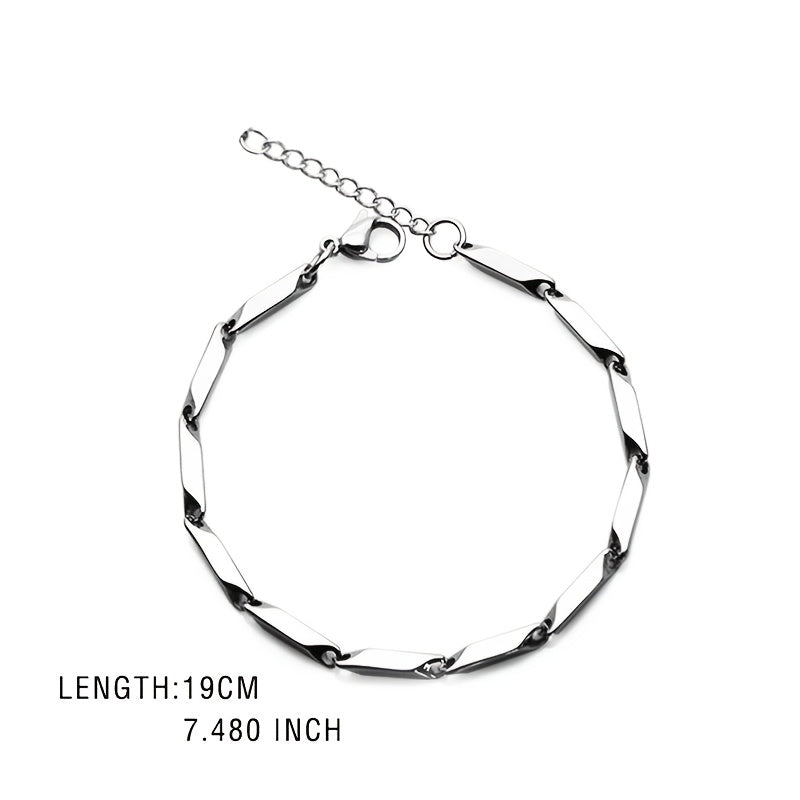 This men's bracelet features a quenched bamboo leaf chain design made from titanium steel with a mesmerizing rainbow finish.