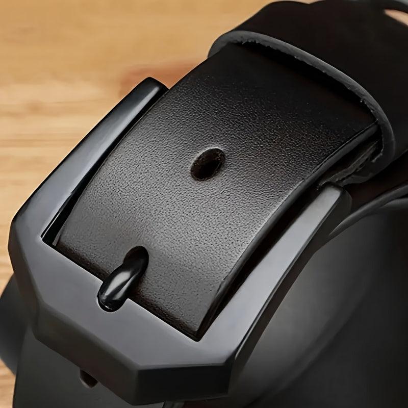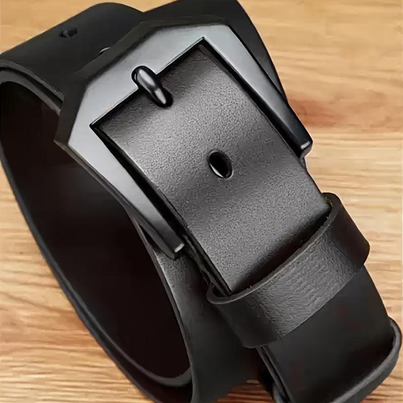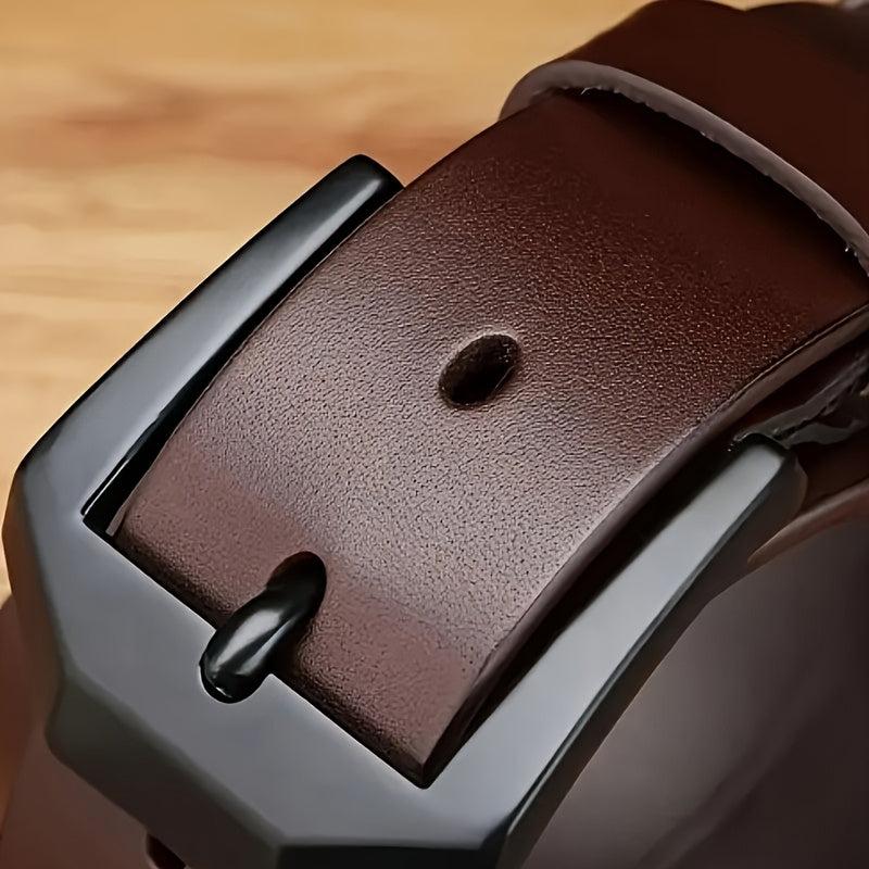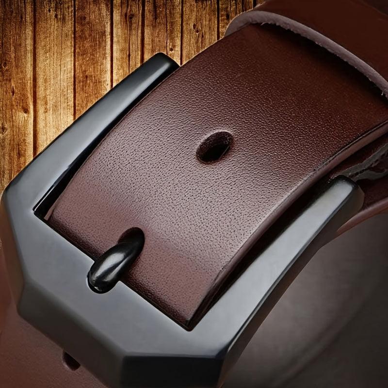 Upgrade your belt collection with this stylish vintage leather belt featuring a smooth texture and an alloy buckle. Perfect for formal or casual attire.
