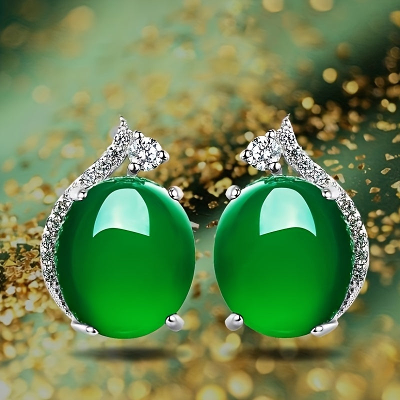 These couple earrings are perfect for weddings and special occasions. They feature exquisite zircon and emerald accents.
