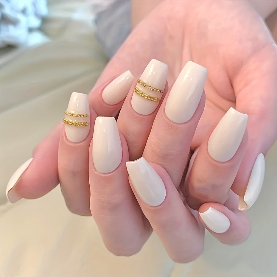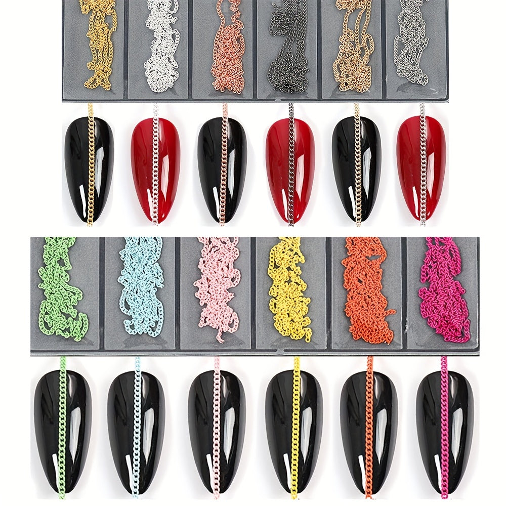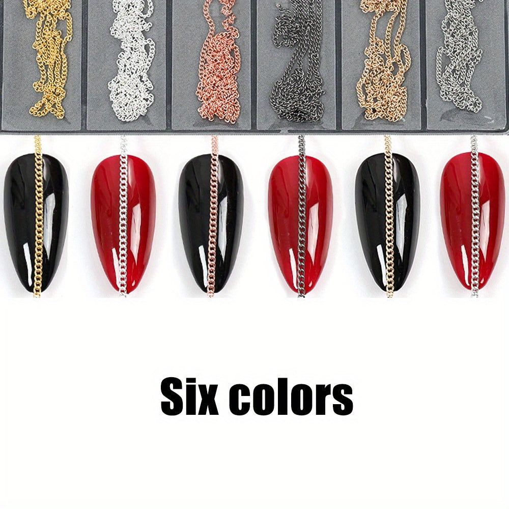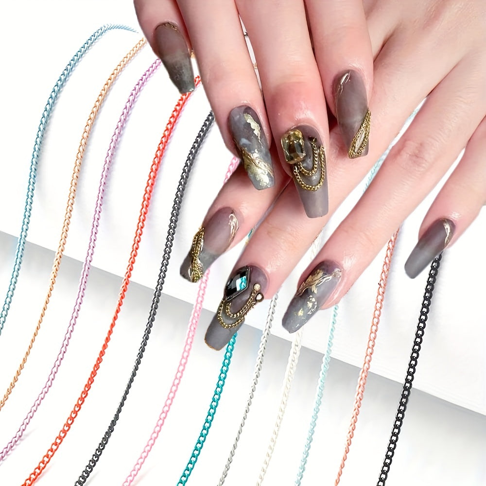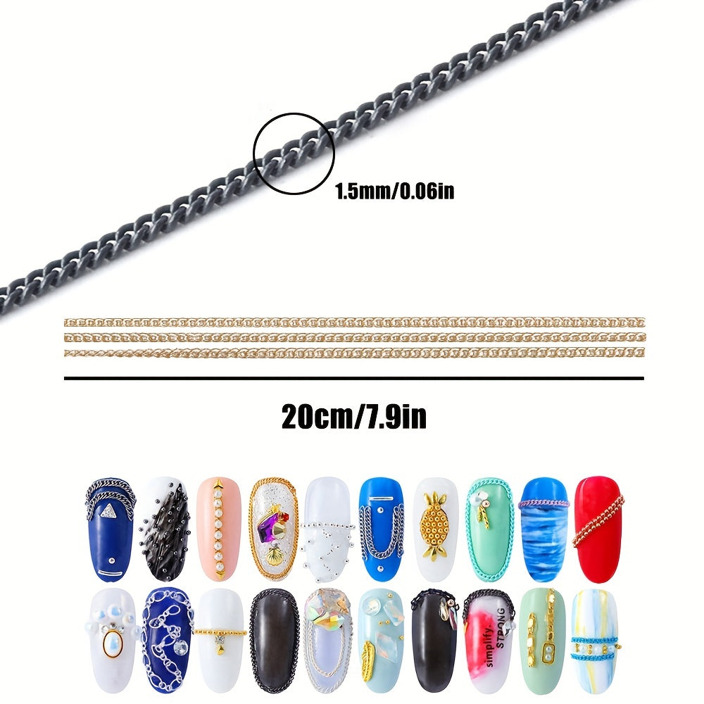 Elevate your nail art game with these golden and silvery metal chains. Perfect for adding a punk edge to your manicure tips, these 3D nail ornaments are easy to apply and create a unique look.
