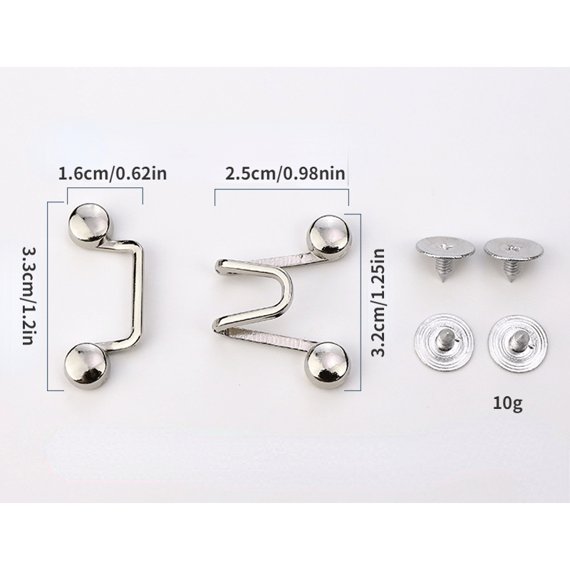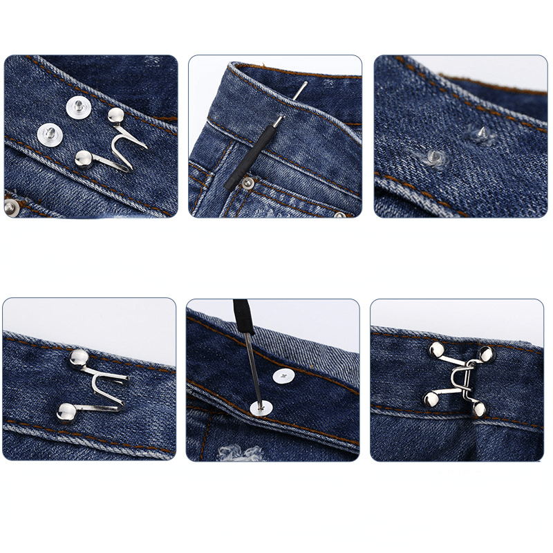 Enhance the fit of your jeans with these metal waist pins. They allow for quick and easy waist adjustment, making your jeans more comfortable to wear. The detachable design provides versatility for different styles.