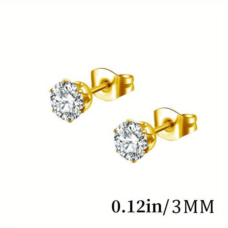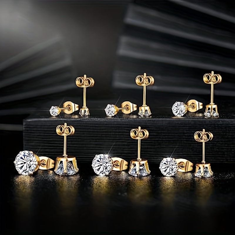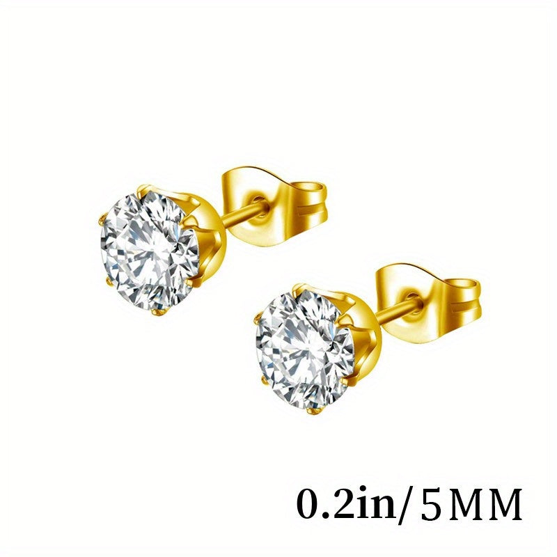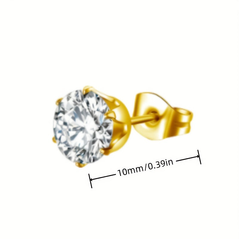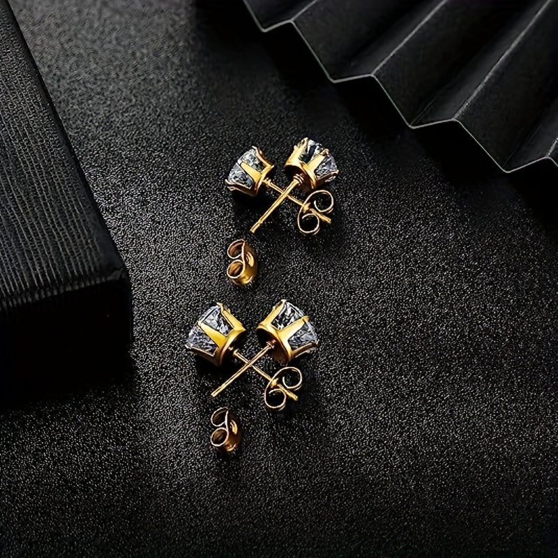 These stylish stud earrings feature cubic zirconia stones and are perfect for men and couples. They are a great addition to any jewelry collection.