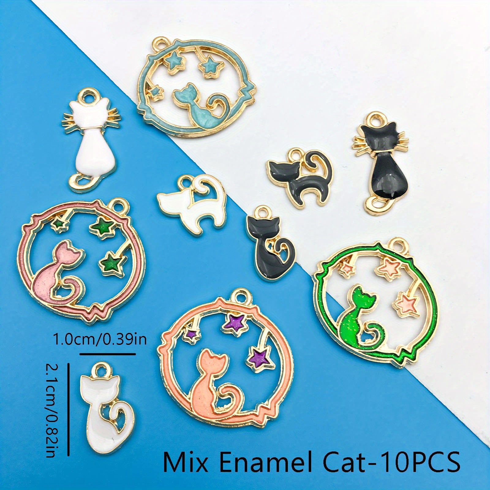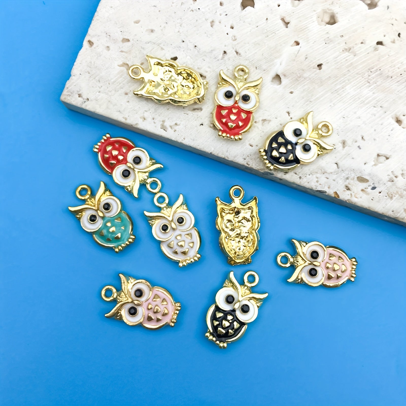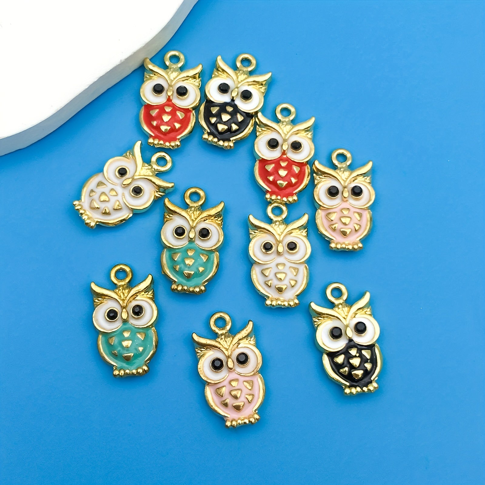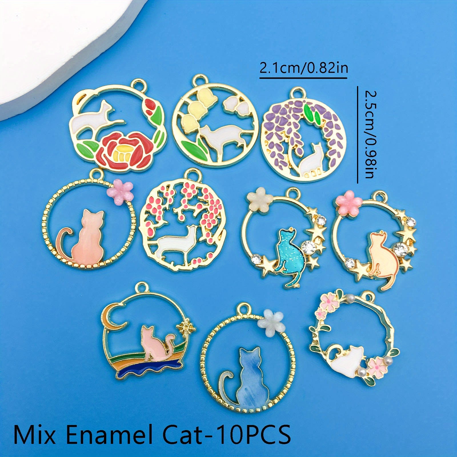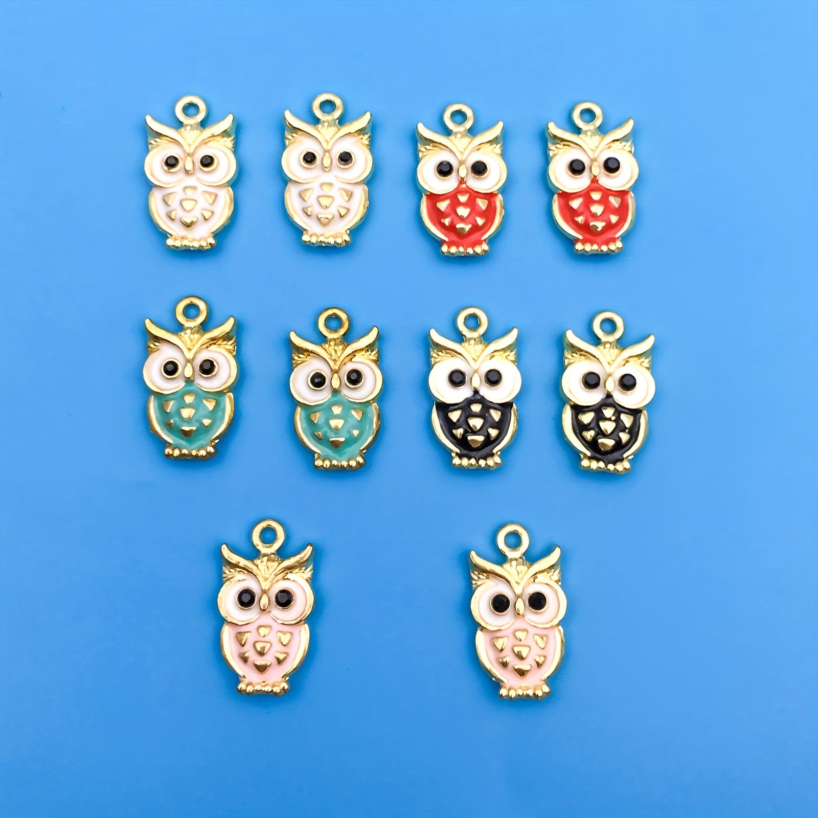 Assorted set of enamel charms in owl, butterfly, cat, starfish, and unicorn shapes for creating unique necklaces, bracelets, and earrings.
