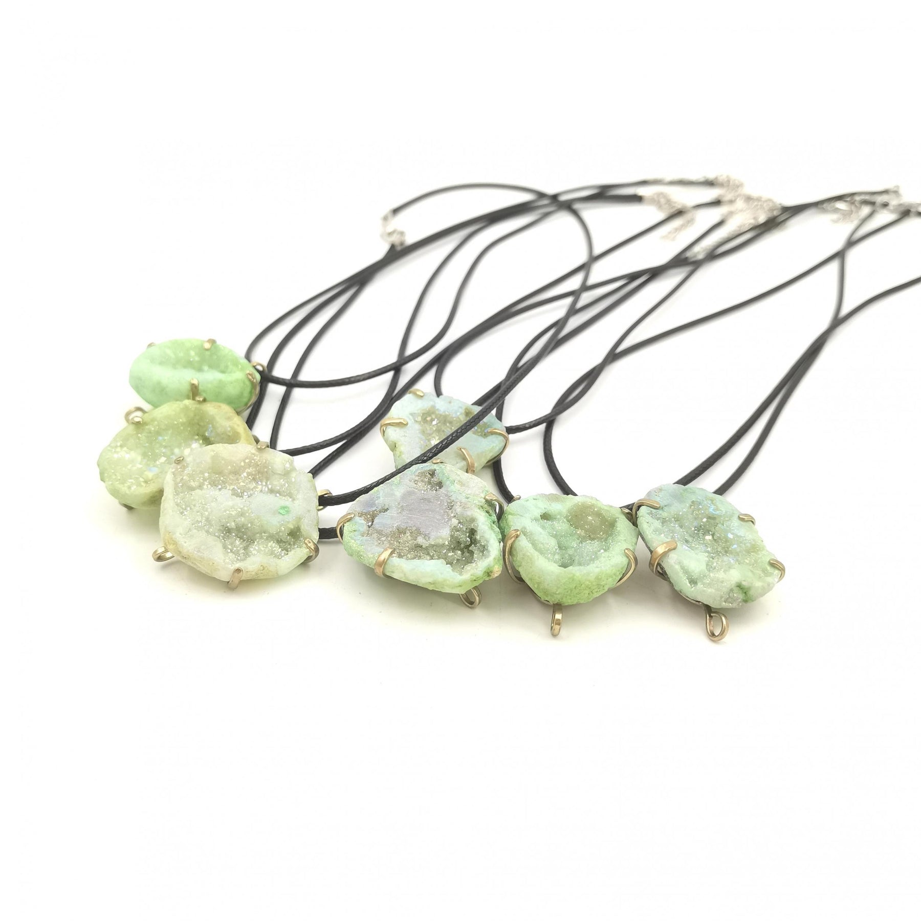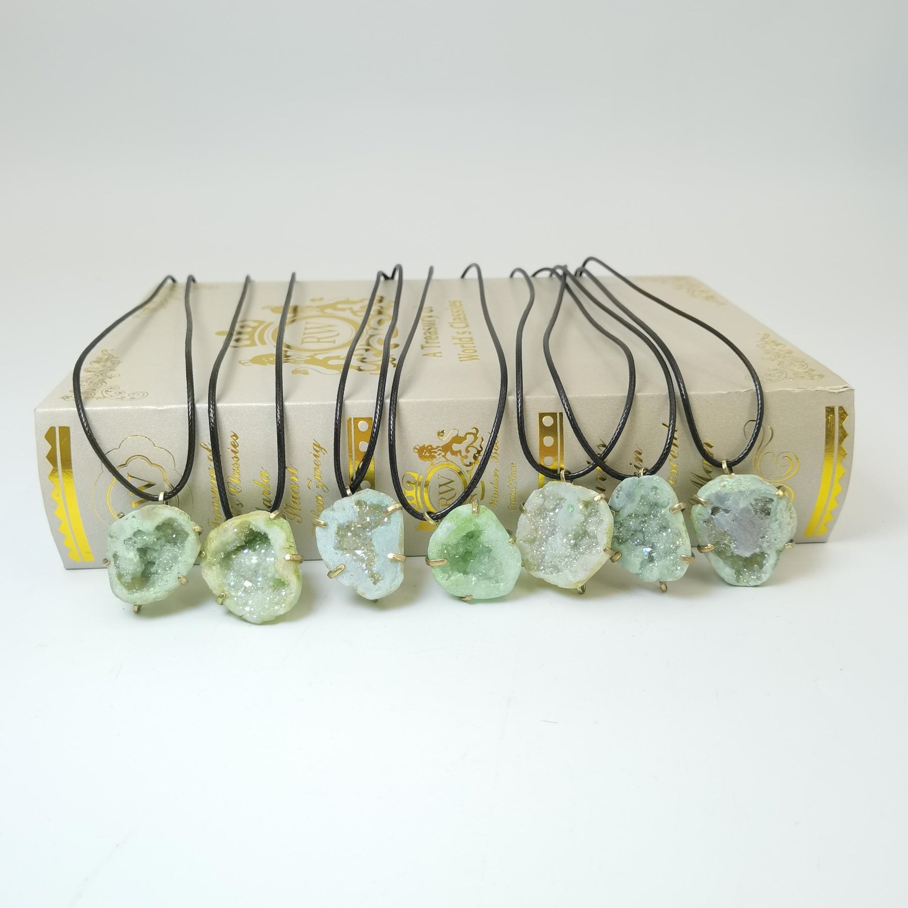 Natural Crystal Moroccan Geode Reiki Healing Stones, Pendant Necklace DIY