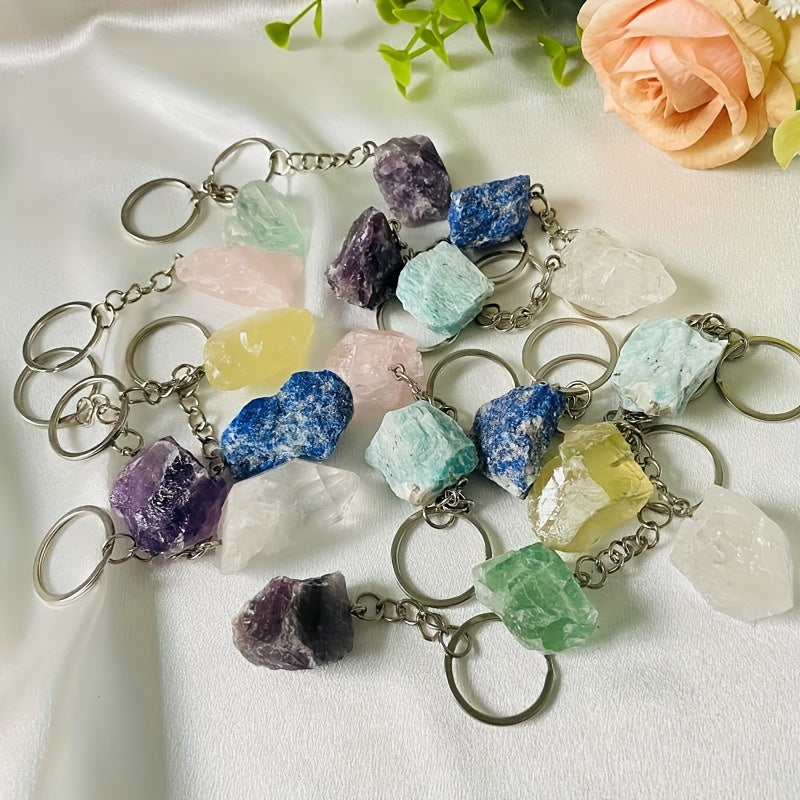 Add a touch of nature to your keys with this large natural crystal raw stone keychain. Each piece is unique and brings positive energy.