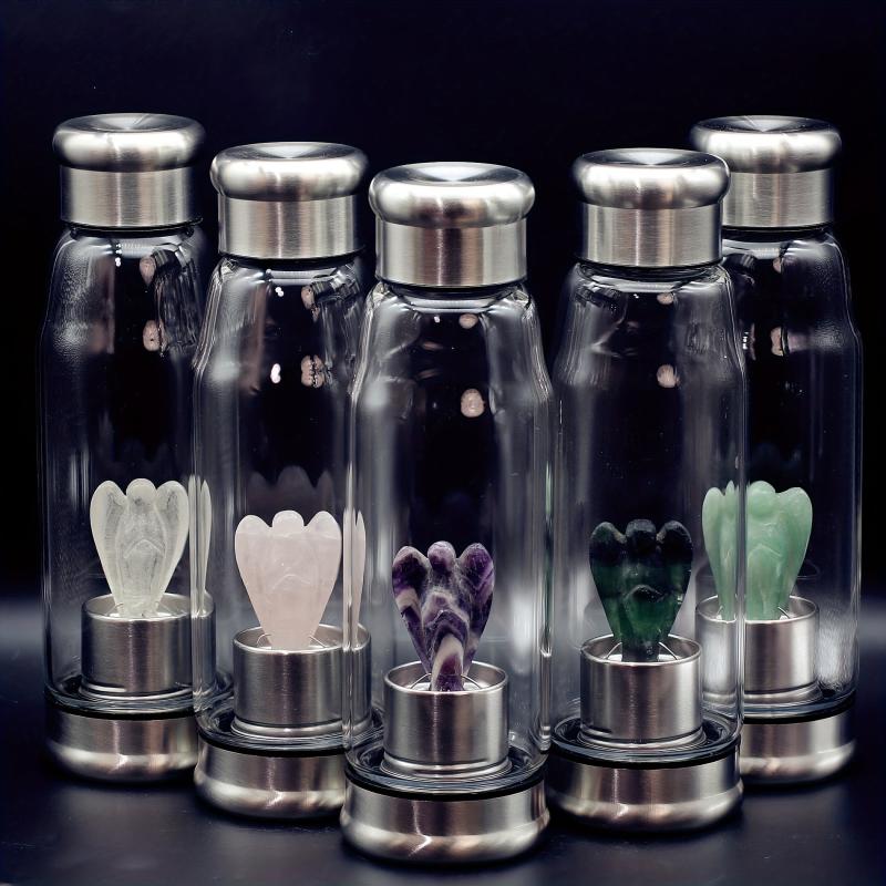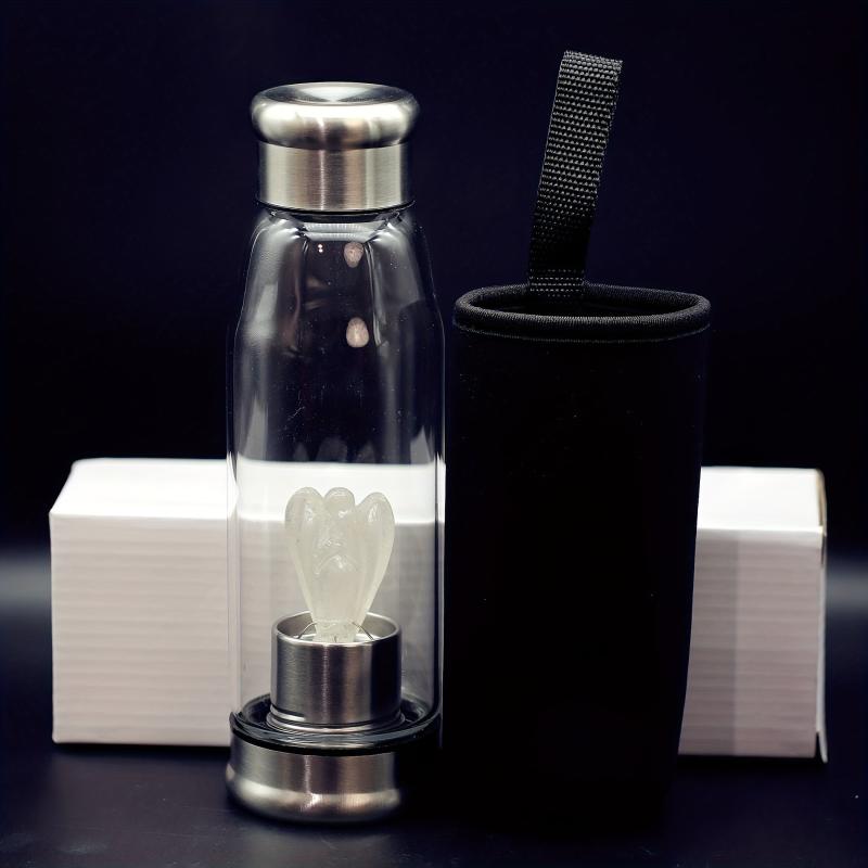 Enjoy your favorite beverage in this uniquely crafted drinking cup made from natural crystal rough. Each cup is carved with an angel design, adding a touch of spirituality to your drinkware collection.