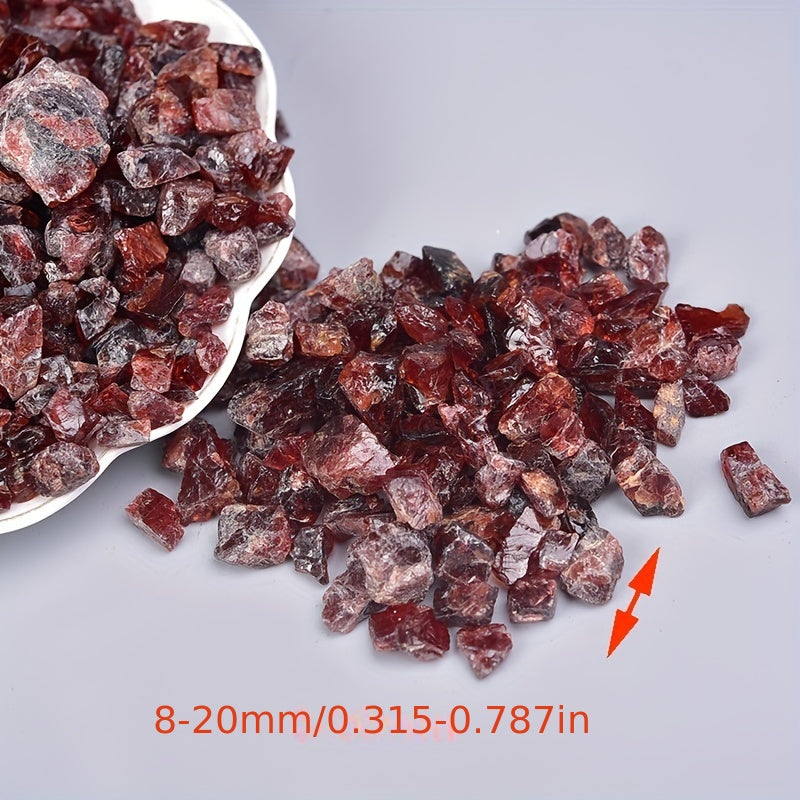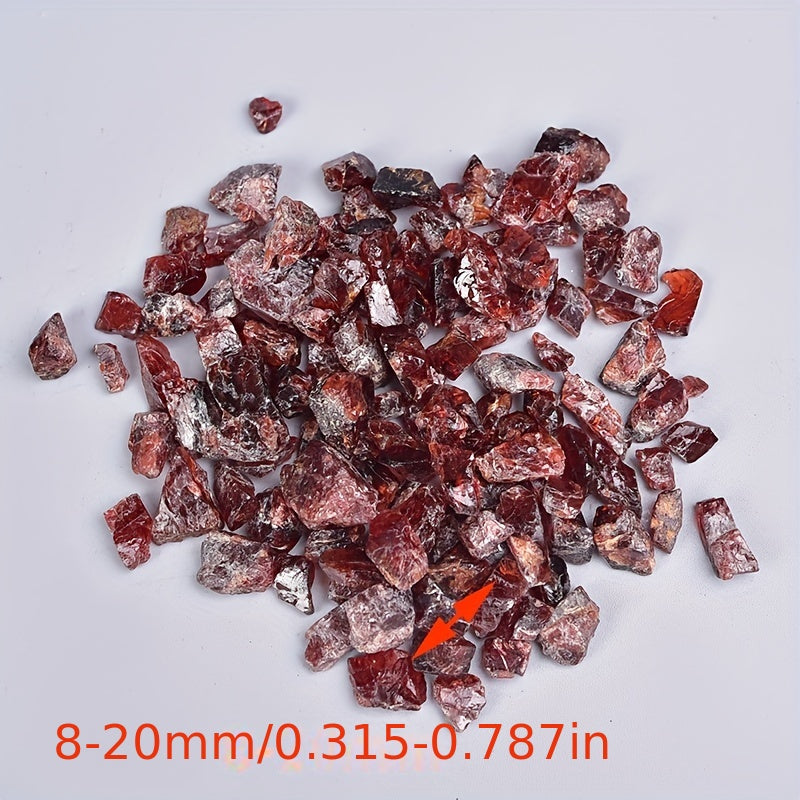 Enhance your crafts with this 50g bag of natural garnet crushed stone featuring particle sizes ranging from 8mm to 20mm (0.3in to 0.8in).